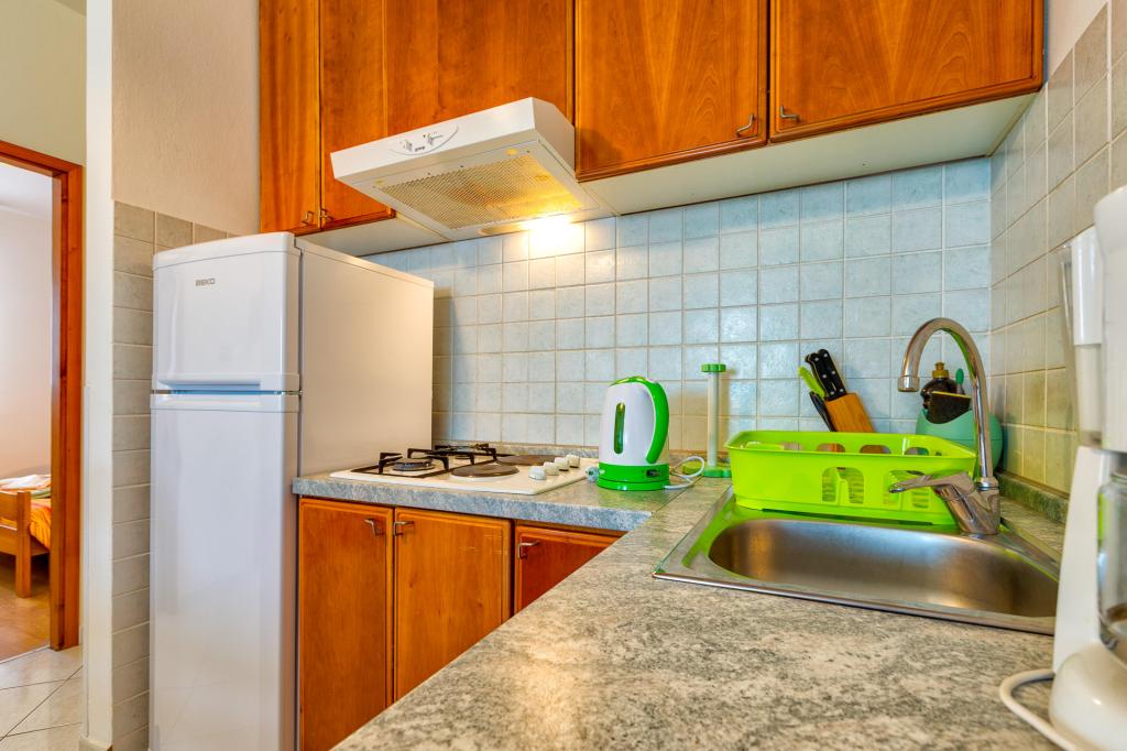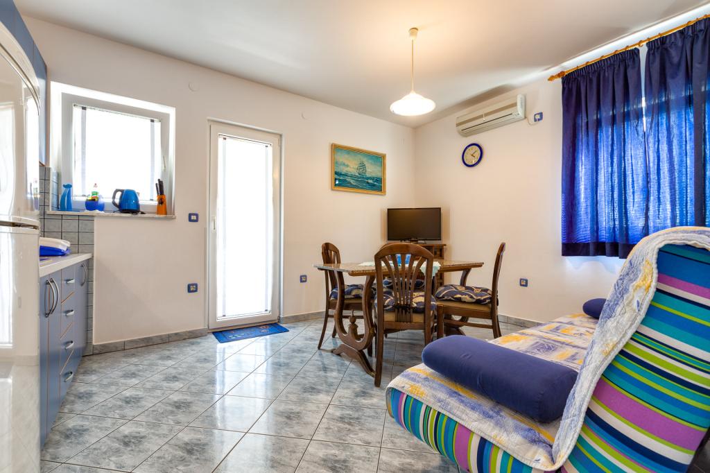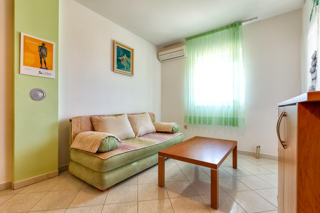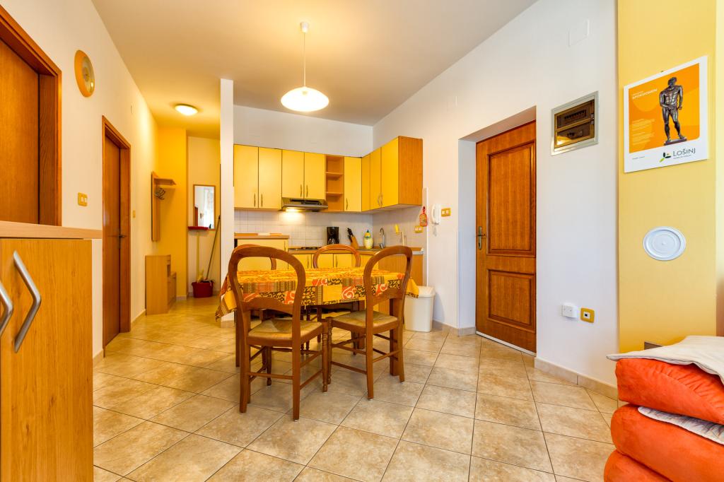 Na voljo so vam 3 popolnoma opremljeni apartmaji. Apartma 1 za štiri osebe se nahaja v pritličju, apartma 2, prav tako za štiri osebe, se nahaja v drugem nadstropju, prav tako apartma 3 za dve osebi. Cena apartmaja vključuje dodatne ugodnosti brez doplačila: otrok do 3 let je brezplačen, žar na dvorišču, uporaba pralnega stroja v skupni pralnici v pritličju, kjer imate na voljo likalno desko in likalnik. Na dan odhoda iz apartmaja nudimo storitev shranjevanja prtljage, če ima gost kasnejši odhod z otoka, ter prevoz do avtobusne postaje in trajektnega pristanišča v Malem Lošinju. Parkirišče za vaš avto je zagotovljeno pred hišo, na dvorišču pa je prostor za kolesa, motorje ... Dodatna doplačila; končno čiščenje enkratno 40 EUR in hišni ljubljenčki na zahtevo z doplačilom. Z veseljem bomo profesionalno in hitro uresničili vse dodatne želje, zahteve, potrebe v vašem imenu pred vašim prihodom in med vašim bivanjem.