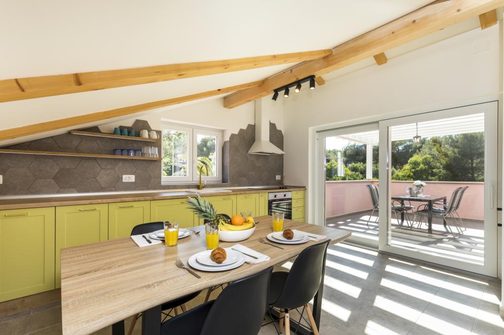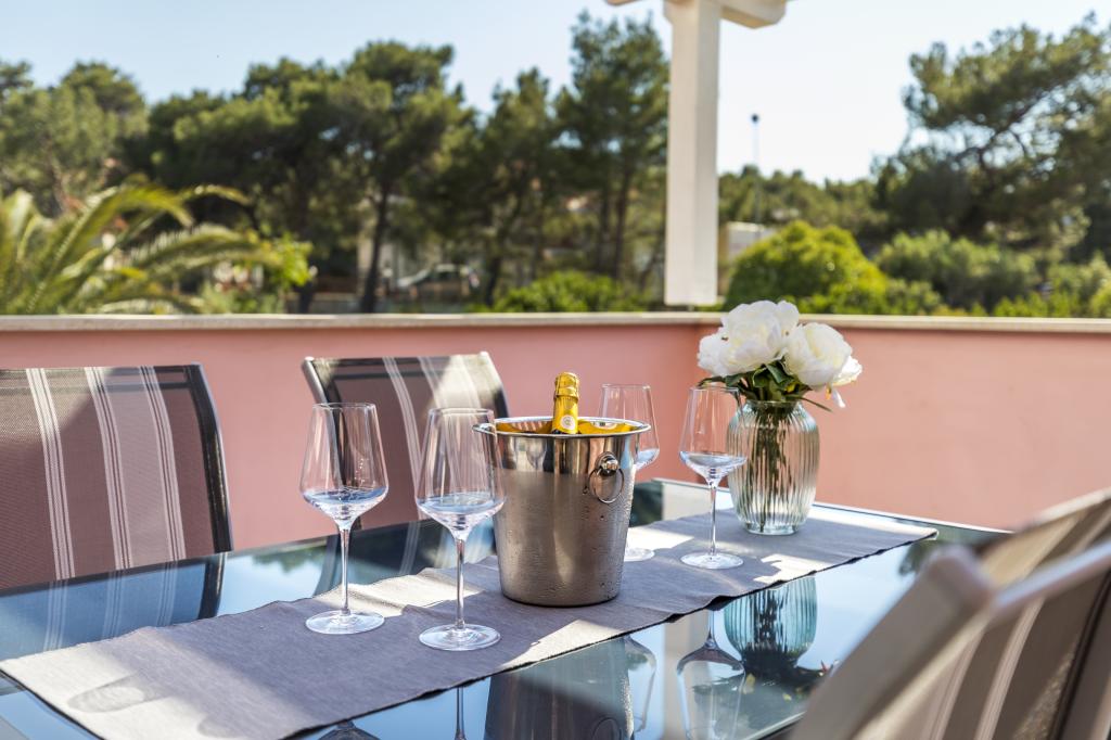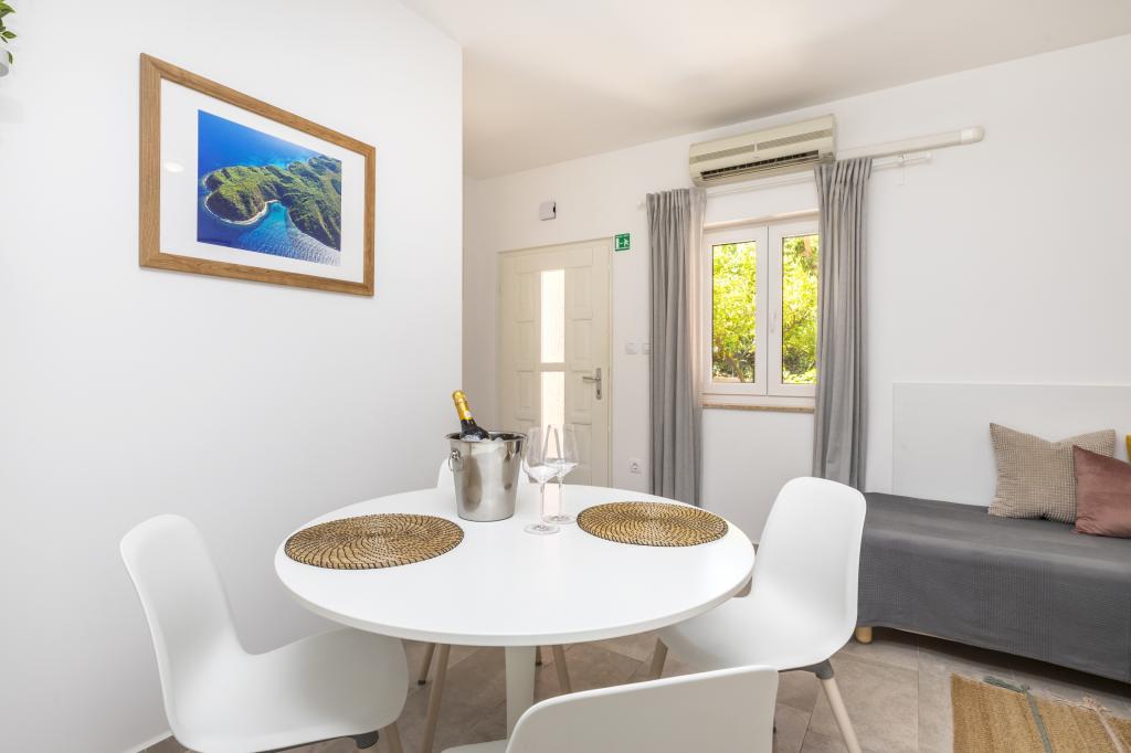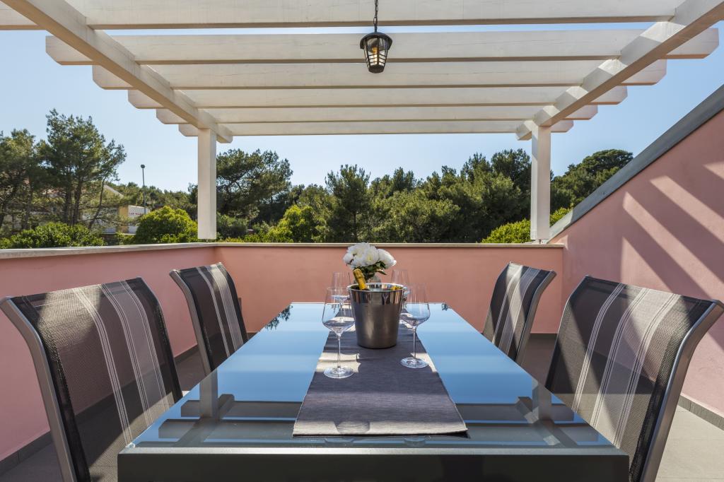 Dragi gostje, Laura Hiša se nahaja v bližini najlepših plaž (Sončna Uvala 900 Čikat 500 m) in le 5 minut do centra mesta. Hiša razpolaga z: (i) 4 apartmaji za 2 2 oseb (ii) 2 Apartmaji za 2 1 osebo (iii) 2 apartmaja za 2 osebi (iv) 1 apartma za 6 oseb. Vsak apartma ima klimatsko napravo (ogrevanje / hlajenje), digitalni SAT TV, parkirišče, internet, in na zahtevo nudimo zajtrk in pralnico. Vam zagotavljajo prijetno bivanje v naših apartmajih, Družina Mustac
