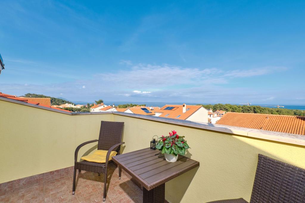 Smo družina Vlakancic v novozgrajenem delu Malega Lošinja oddajamo 4 apartmaje, 300 m od zaliva morju z majhno pristanišče in plaže v bližini. Na novo zgrajena, prostorno in svetlo apartmaji, popolnoma opremljeno. Obdana z vrtom in dvorišče, ki vključuje parkirišče za več vozil. Vsi apartmaji imajo teraso ali balkon. V vrtu kamnito žar. Za tiste, ki iščejo nekaj več, posebno naravnega okolja in odmor od stresa, oddajamo celo hišo, Casa Maria, tudi v Malem Lošinju, v 7000 m2 oljčnega oaze, 10-15 minut hoje do plaže, trgovine in restavracije. Casa Maria je bila nekoč, in se uporablja kot namestitev za oljčnega obiranje in druge sezonske kmetijske delo. Danes je bila v celoti obnovljena, vendar prvotna mediteranski podeželja okolice je ohranjena, znotraj in zunaj. Zunaj je velik kamen teraso z odprtim kaminom, veliko jedilno mizo in ležalniki za sprostitev. Parkirišče v bližini hiše.