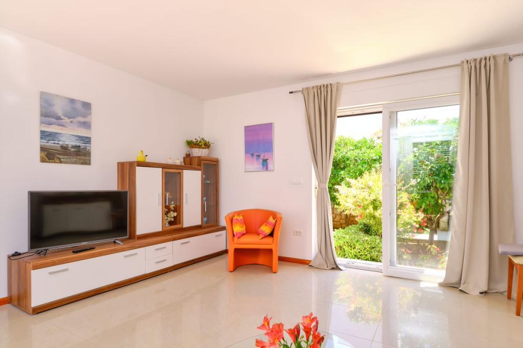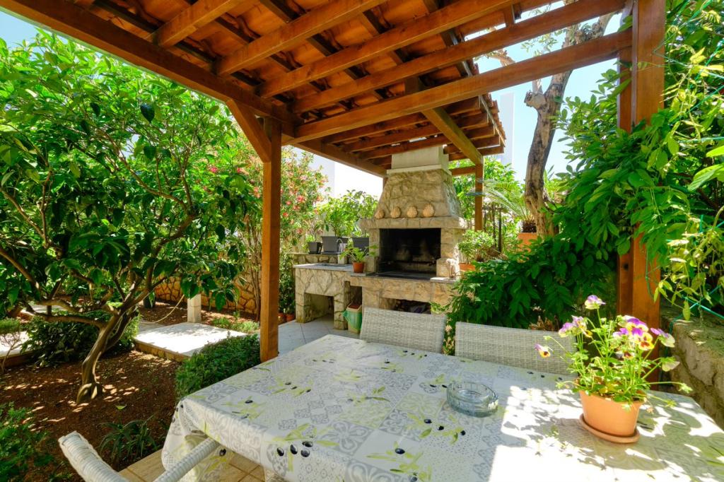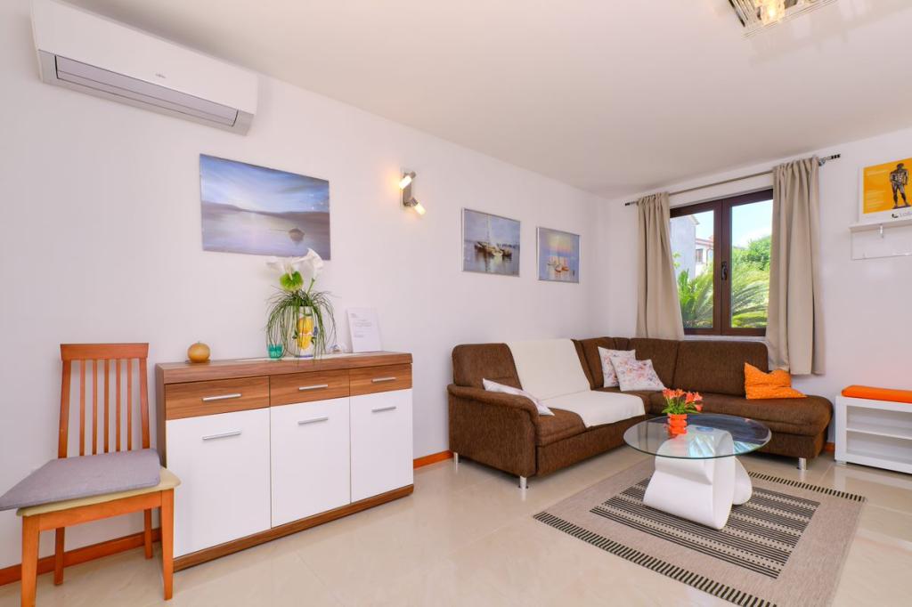 Apartma je prostoren, lepo urejen s kaminom na vrtu. Ima klimo in WIFI internet. V bližini se nahaja restavracija, trgovina, otroško igrišče. Plaža je nedaleč od apartmaja, center mesta pa je oddaljen 10 minut. Cena vključuje parkirišče pred hišo,