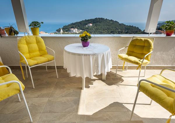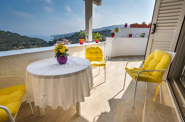 Prijeten in izredno čist apartma s trdno teraso in čudovitim pogledom na morje in gore. Izjemno angažiran in prijeten lastnik, vedno pripravljen na dialog in morebitno pomoč. Dobra lokacija. Edina manjša pomanjkljivost - bližina glavne ceste, s katere prihaja prometni hrup.