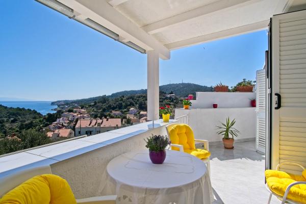 Zelo lep apartma, urejen, čist popolnoma opremljen s čudovito teraso s prekrasnim pogledom na morje. Nastanitev kakršno si lahko samo želiš. Vse pohvale prijazni lastnici gospe Ani za njeno toplo prijaznost in zahvala za vse nasvete glede zanimivosti otoka in skrbi za prijetno počutje.Res sva preživela čudovite počitnice pri ga.Ani in želiva in verjameva da se še vrneva v to nastanitev.