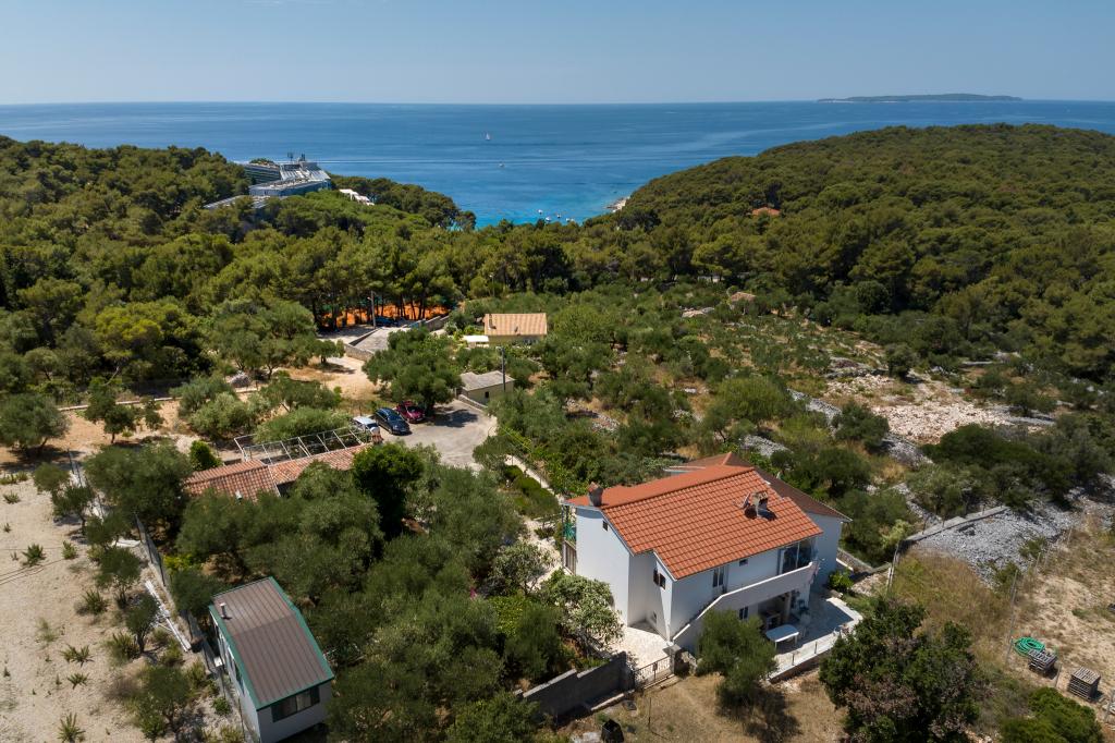 Hiša se nahaja v Sunčani uvali na Malem Lošinju, na popolni mirni lokaciji, obdana z zelenjem in vonjem otoških aromatičnih rastlin. Najlepši plaži Sunčane uvale in Čikata sta oddaljeni le 5 minut hoje, središče mesta s trgovinami, restavracijami, kavarnami in drugimi ugodnostmi pa je oddaljeno le 10 minut hoje. Ponujamo različne namestitvene enote, vključno z apartmaji s pogledom na morje, idealnimi za družine in pare, ter eno udobno sobo za goste, ki iščejo nekaj preprostejšega. Poleg priročne lokacije ponujamo brezplačno parkiranje na dvorišču hiše, brezplačen internet in možnost uporabe zunanjega žara. Rezervirajte bivanje pri nas in doživite sproščujoče vzdušje, čudovito naravo in nepozabne počitnice ob morju!
