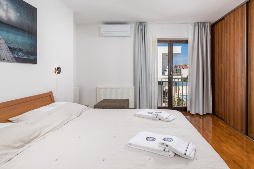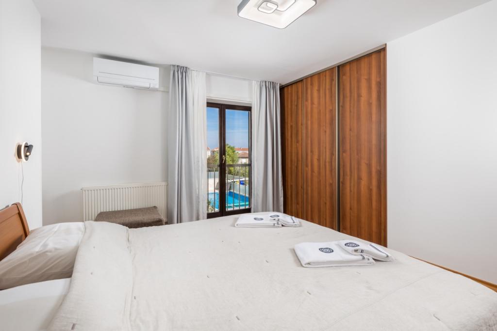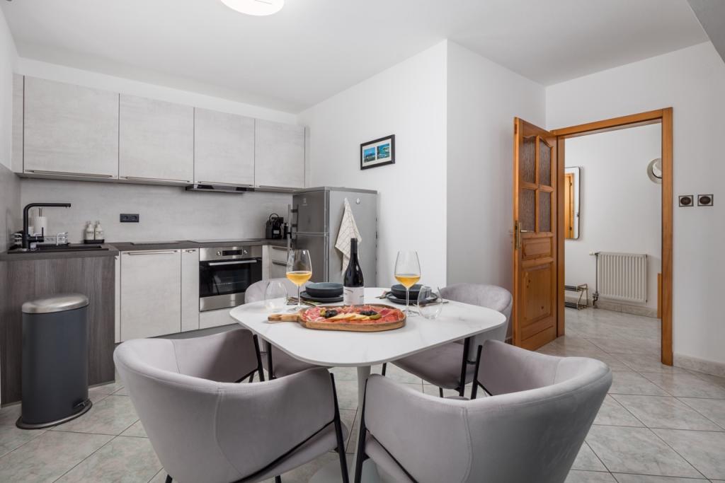 Popolnoma opremljeno in klimatizirano stanovanje se nahaja v prvem nadstropju družinske hiše. Hiša se nahaja na koncu majhne slepe ulice - brez prometa. Parkirni prostor je zagotovljen. Če imate čoln, ga lahko privežete v majhnem pristanišču le 100 metrov od hiše. Rezervacijo priključkov je potrebno najaviti ob rezervaciji apartmaja. V samem pristanišču so tri zelo dobre restavracije, znane po vsem otoku. Do urejene plaže potrebujete le 8 minut lahke hoje. Na plaži je tuš in še ena restavracija. Porat je za vaše najmlajše uredil lepo otroško igrišče, ki se nahaja na pol poti do plaže od naše hiše.