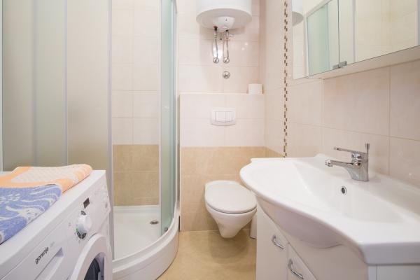 To 50 m² veliko stanovanje je sestavljeno iz ločene spalnice, največ 15 m², 4 m² velike kopalnice in majhne čajne kuhinje z ločenim vhodom, dostopnim z balkona. Nima pečice ali mikrovalovne pečice (napačna slika). Ponudili so mi "sobo" brez kuhinje za 50 €/dan. Vse v ponudbi je napačno: bivalni prostor, slika kuhinje in pomanjkanje povezane bivalne enote.