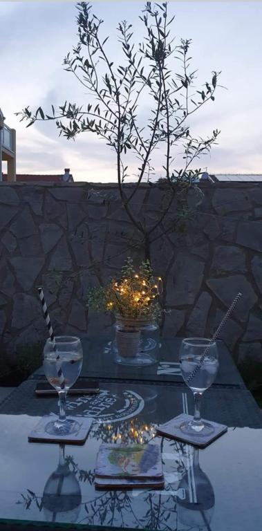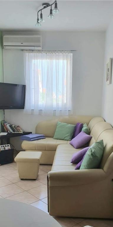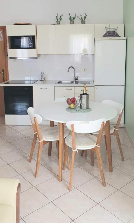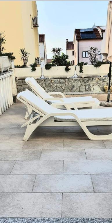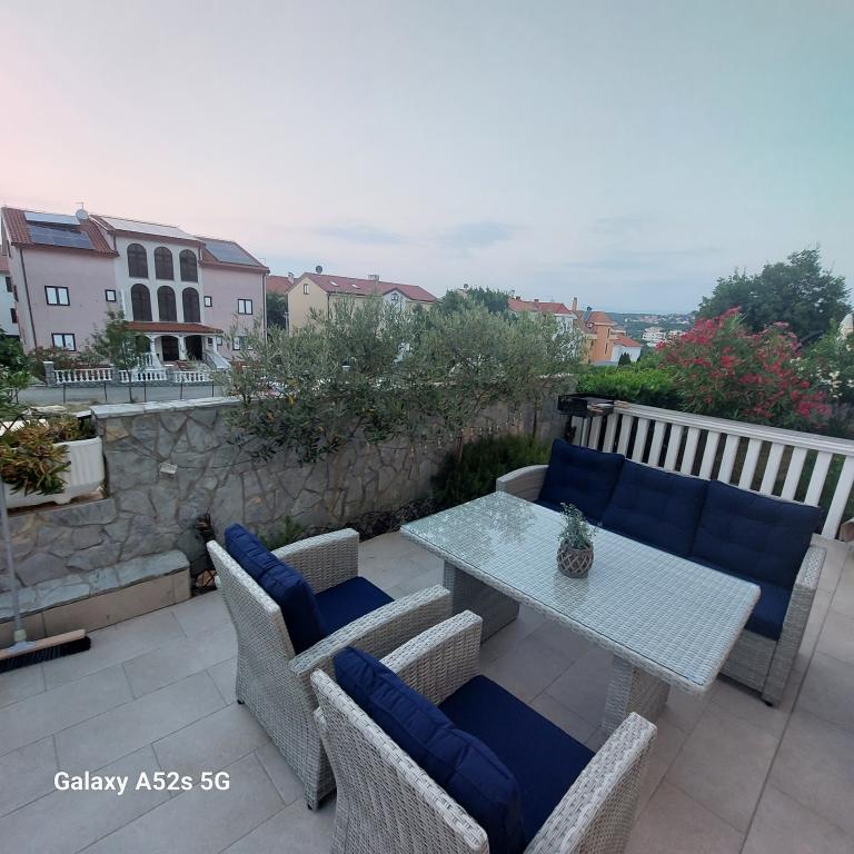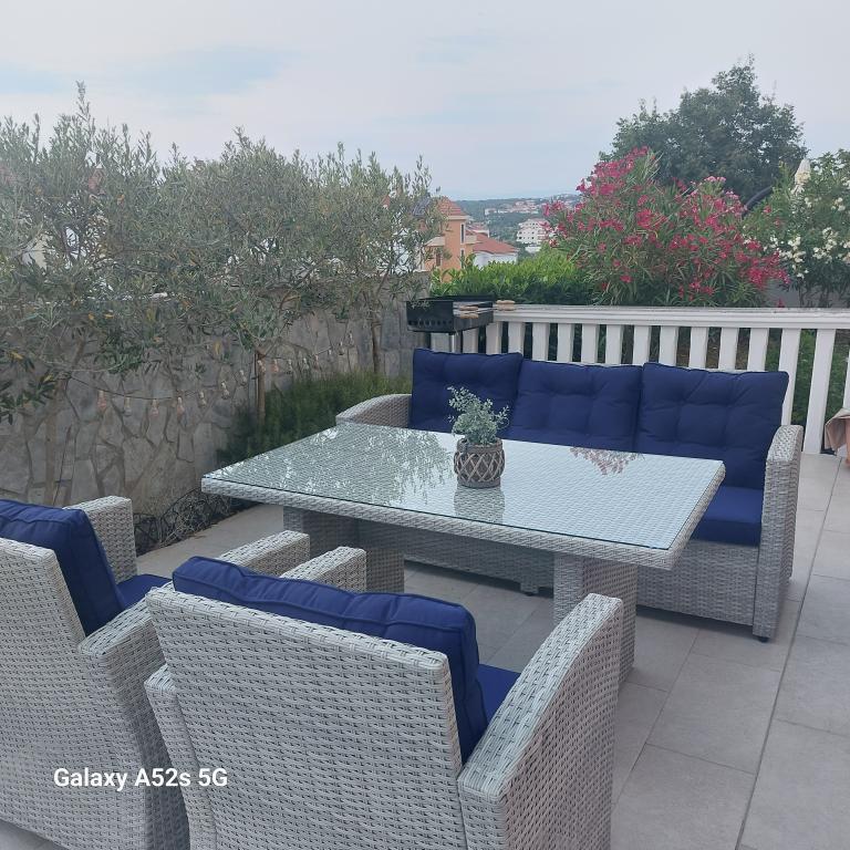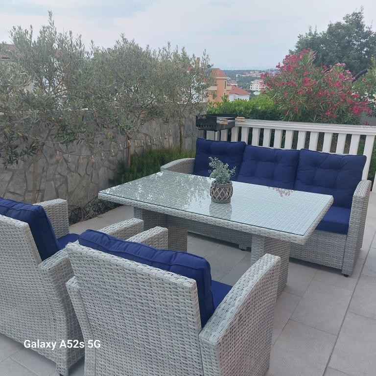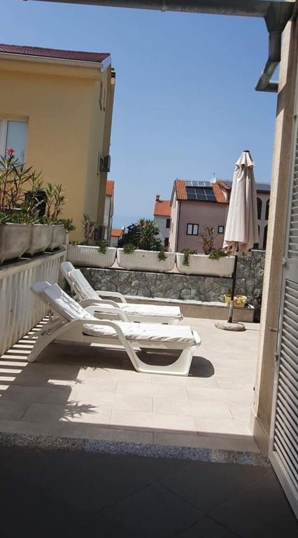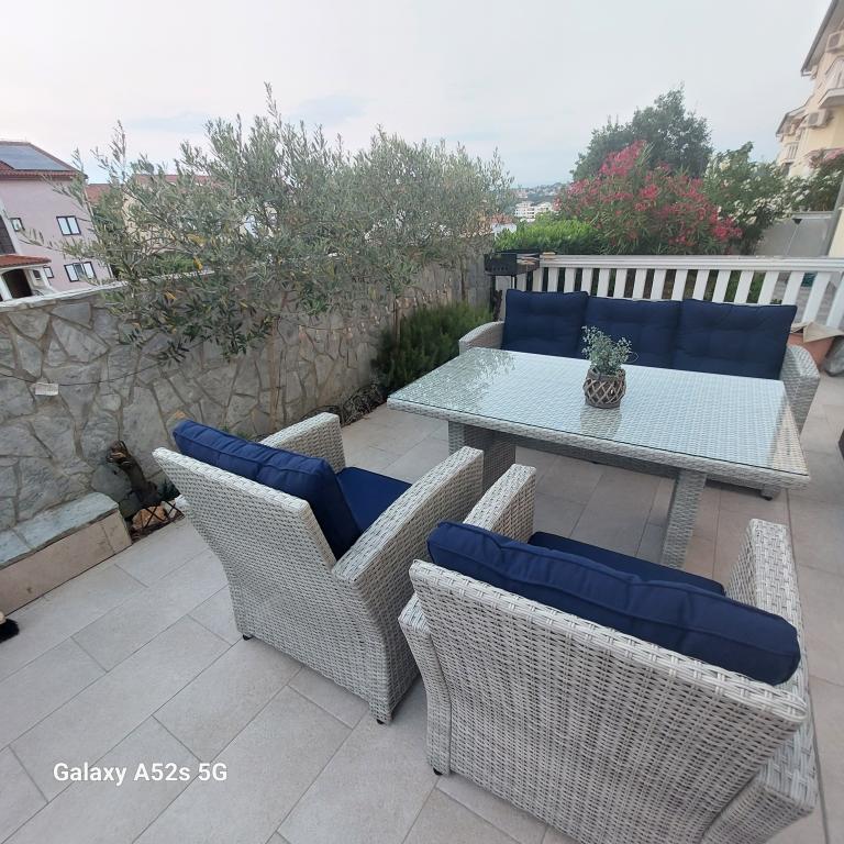 Apartma se nahaja v čudovitem mestecu Malinska na otoku Krku. Nahaja se v pritličju. Sestavljen je iz spalnice z veliko zakonsko posteljo (posteljnina vključena, menja se vsakih 7 dni) in dnevne sobe z raztegljivim kavčem za dva. Prostor je odprt, tako da sta jedilnica in dnevna soba povezani. Opremljen z dvema televizorjema - enim v dnevni sobi z mini linijo in drugim v spalnici. Apartma ima kopalnico s tušem (3 brisače na osebo), pralni stroj in kuhinjo z mikrovalovno pečico, štedilnikom, aparatom za kavo in velikim hladilnikom z zamrzovalnikom 50 litrov ter pomivalnim strojem. Parkirišče pred apartmajem. Najbolj dragocen del apartmaja je velika terasa (35m2) z udobnimi stoli in ležalniki, kjer lahko uživate v popoldanskem počitku. Pri izhodu na teraso pojdite skozi poseben kotiček z mizo in dvema stoloma (loža), če želite popiti kavo z odprtim pogledom na teraso in delnim pogledom na morje, skrito pred soncem.