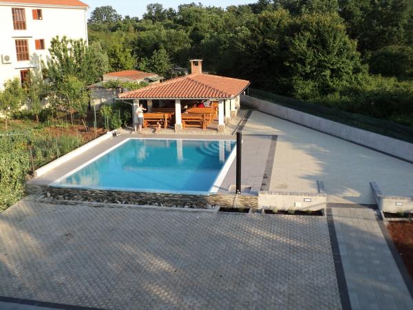 Naša hiša se nahaja v Vantačići, na otoku Krku. Morje je oddaljena 400 m, trgovine in restavracije se nahajajo tudi v bližini. Hiša ponuja 6 apartmajev, ki so kategorizirana s 3 *** za sprejem 3:00-6:00 osoba.Svaki apartma ima popolnoma opremljeno kuhinjo z jedilnico in dnevno sobo, eno ali dve spalnici soda, kopalnica z WC, SAT TV, free wi-fi, klimatsko napravo in balkon ali teraso. Hiša je v celoti ograjena in varovanih parkirišč za vse apartmane.U del parceli od 3000 m2, je otroško igrišče, prostor za badminton, pokrita gazebo z žarom, mizami in klopmi, bazena s teraso za sončenje. Idealno okolje za družine, ki iščejo rekreacijo in brezskrbne počitnice.