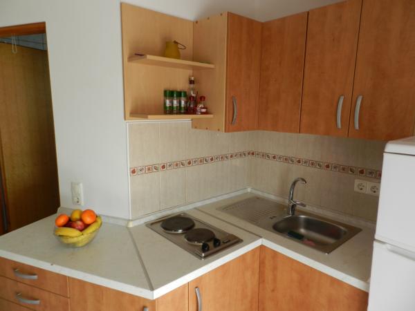 OBJEKT: Kategorija 3 zvezdice. Skupaj 9 ležišč v 3 enote. Apartma je obdan z odprtim vrt (velikosti 500 kvadratnih metrov) z drevesa, rože in grmovje. Lastnik živi v hiši (z ločenim vhodom). Kolektivni razpoložljivih uporabe: internet (WLAN), terasa, gugalnica, žar, zunanji kamin in vrt. APARTMAJI: stanovanje 3 sobe 45qm, za 5 oseb v kleti ali studio apartma v 1. nadstropju, 1 spalnica, 25 kvadratnih metrov, za 2 osebi. klimatska naprava. Vhod v 1. nadstropju, s pomočjo zunanjih stopnicah v hodniku dnevno / spalni prostor. zunanje stopnice pokrita 1. nadstropje: Dnevna / spalnica (25 kvadratnih metrov) z 1 zakonsko posteljo, jedilni kotiček (2 mesti), TV, dostop na teraso (16 kvadratnih metrov, pokrita, vrtna garnitura, 1 miza, 4 stoli, skupaj z dnevno / spalnico). kuhinja z jedilnim kotom, tv, električni štedilnik, hladilnik (hladilniku), mikrovalovna pečica, kave, opekač kruha, kuhalnik vode in dostop na balkon. kopalnica (4 kvadratnih metrov) s tuš kabino, umivalnik in WC.
