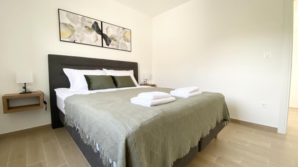 Vila Malina je nova apartmajska hiša, ki se nahaja v mirnem delu vasi. Ima tri moderno opremljene apartmaje velikosti 50, 55 in 60 m2 z ločenimi vhodi in zavarovanimi parkirnimi mesti na dvorišču. Vsak apartma ima dnevno sobo, spalnico, kopalnico, kuhinjo in pokrito teraso. V dnevni sobi je raztegljiv kavč, ki se lahko uporablja kot dodatno ležišče za dve osebi. Kuhinja je opremljena s posodo, kuhinjskimi krpami, pečico, mikrovalovno pečico, hladilnikom z zamrzovalnikom, grelnikom vode, električnim štedilnikom, opekačem kruha in pomivalnim strojem. Dodatna oprema vključuje internetno povezavo, klimatsko napravo v vsaki sobi, sesalnik, pralni stroj, sušilec za lase in mreže proti komarjem na vseh oknih. Brezplačna otroška posteljica je na voljo na zahtevo. Gostje imajo dostop do skupne terase z žarom in zunanjim tušem. Za bivanje 10 dni ali več je na voljo 10 % popust.