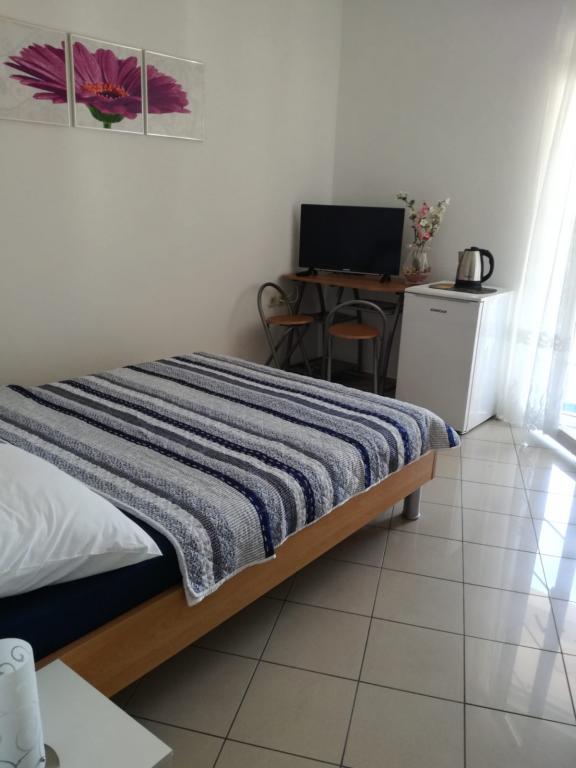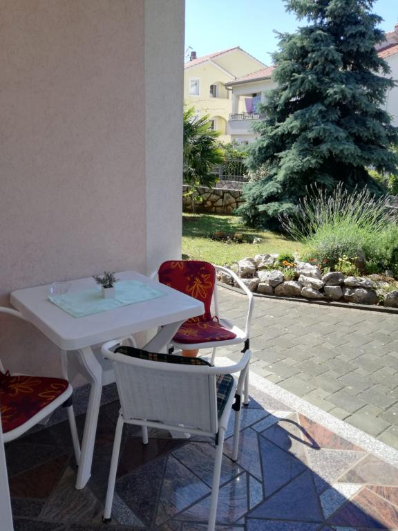 Nahajajo se v mirnem delu Malinske, ti funkcionalni in lepo urejeni apartmaji, studii in sobe ponujajo dopust za vse čute. Apartmaji se nahajajo v pritličju stavbe, ki je 10 minut hoje od centra mesta in najbližje plaže. Prosto parkirno mesto se nahaja pred stavbo, ki ima tudi žar za vsakodnevno uporabo. Enosobni apartma zagotavlja namestitev za 4 osebe in je opremljen z vsem, kar potrebujete za sproščene počitnice (klima, mikrovalovna pečica, aparat za kavo, kuhalnik vode, pralni stroj, WiFi, SAT TV, hladilnik, posoda, brisače, posteljnina). Studio s kuhinjsko nišo lahko sprejme do 2 osebi, tukaj je na voljo mikrovalovna pečica, aparat za kavo, kuhalnik vode, WiFi, satelitska TV, hladilnik, posoda, brisače in posteljnina. Soba je za 3 osebe, ki je opremljena s hladilnikom, kuhalnikom za vodo, SAT TV, WiFi, posteljnino, brisačami in posodami. Vse tri enote imajo ločene vhode in lastne terase za uživanje v toplih poletnih večerih.