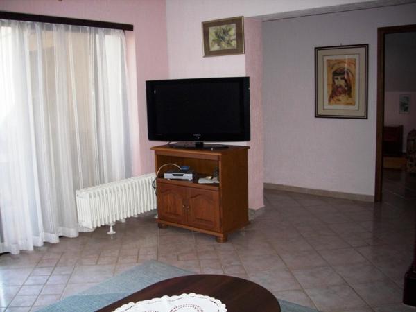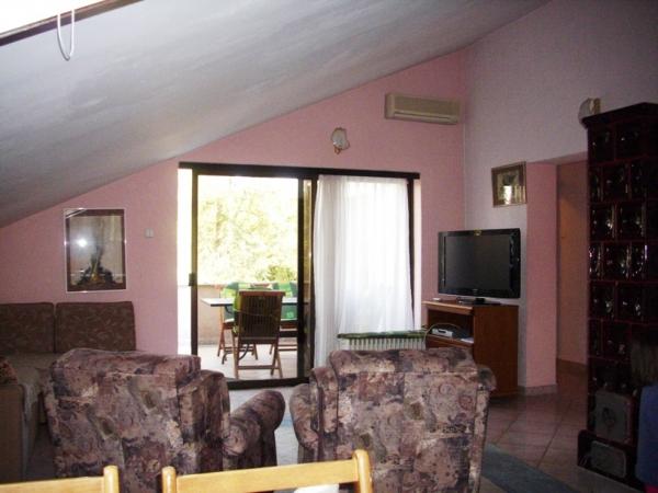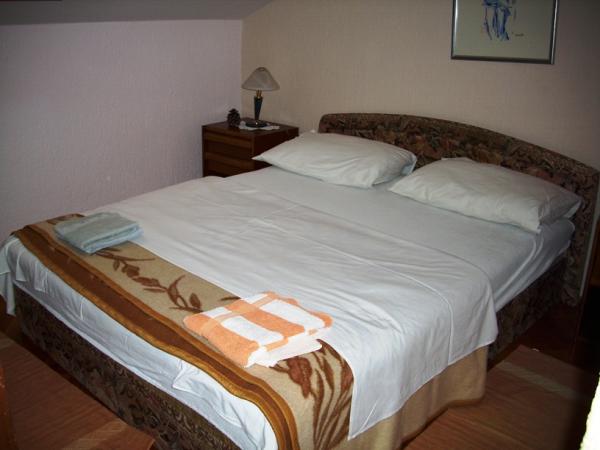 MALINSKA 50 metrov od plaže, Milos apartmaji, urejeni in opremljeni s klimatsko napravo, brezžični internet, LCD SAT TV, hladilnik, plinski štedilnik, 2 + 2 električni, pečica, posteljnina, brisače. Žar na dvorišču. Apartma 5 +2 na tleh 95m2 + 15m2 terasa delno pokrita s tendo in pogledom na morje, eno dvojno sp. sobe, 1 triple sp. Prostor. 2 kopalnici, dn. soba 54 m2. dva kaucha kuhinja. Apartma 2 +2 v nadstropju (terasa), 40 m2 + 20 m2 terasa, pogled na morje, ena dvoposteljna soba, kopalnica z WC, dn. soba s kuhinjo. Apartma 2 +2 (Mala terasa) na tleh, 39m2 + terasa 10 m2, ene dvoposteljne sobe in življenja. soba s kuhinjo, kopalnica z WC. Apartma 4 +1 v pritličju, 75 m2 + 20 m2 pokrita terasa z žarom, 1 zakonska sp. 1 triposteljna soba + sp. soba, kopalnica z WC, primeren za invalide.