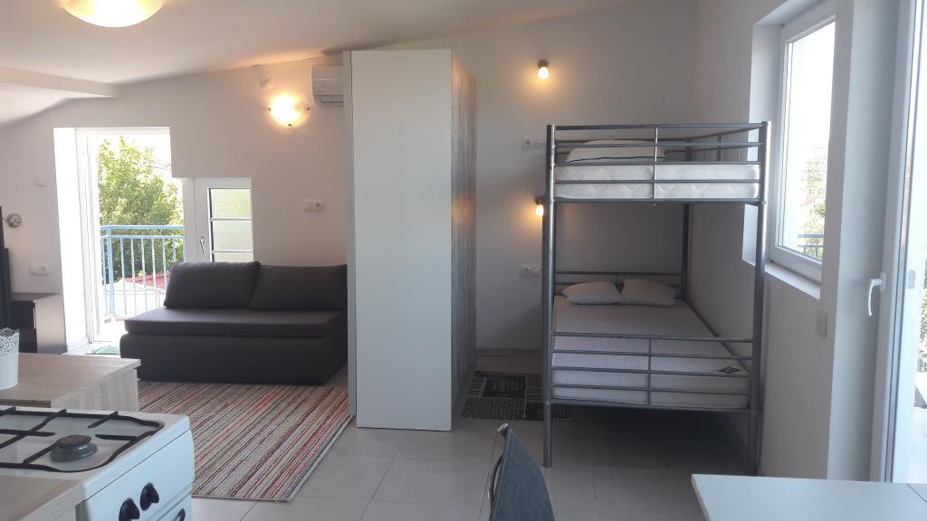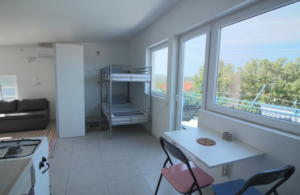 V mirnem delu Svetega Vida se nahaja zasebna pol-samostojna hiša s funkcionalno opremljenimi apartmaji za 2-6 oseb. Vsi imajo svoje terase, s katerih se vstopa v enoto. Lastnika živita v pritličju hiše. Na dvorišču je velika miza s klopmi in žar. Parkiranje je na dvorišču. Do centra Malinske je 15 minut, do plaže pa 20 minut hoje. V okolici je veliko čudovitih plaž, obmorskih sprehajališč in kolesarskih stez. Za tiste, ki iščejo dobro zabavo, je v bližini tudi nočni klub Diamant (cca 2 km). Klimatska naprava, turistična taksa, registracija, končno čiščenje, satelitska TV, posteljnina, brisače, kuhinjske krpe, detergenti, gobice, toaletni papir in milo so vključeni v ceno, parkiranje in Wi-Fi pa sta brezplačna. DODATNI STROŠKI: - Hišni ljubljenčki = 5 €/dan - 1 pes - Pranje perila = 3 €, - ogrevanje od 4-6 €/dan - 1 nočitev je 30 % DRAŽJA - Od 10.7. do 25.8. Minimalno bivanje je možno 7 noči, razen za zapolnjevanje vrzeli med rezervacijami - od 1. do 9. julija in od 25. do 31. avgusta je možno rezervirati minimalno bivanje 5 noči.
