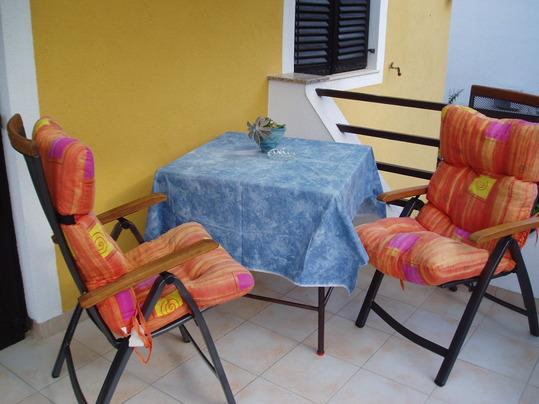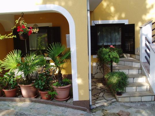 Dva posteljni apartma AP 2 +2 (dve ležišči + dve dodatni ležišči) in Studio 2 +1 (podvojiti + 1 dodatno ležišče), v prvem nadstropju hiše. Vsak apartma ima poseben vhod, parkirišče, klima, TV in druge opreme za prijetno bivanje. Hiša se nahaja na slepi ulici - nobenega prometa. Na dvorišče z zelenjem, je žar za goste, da uporabljajo. Oddaljena od najbližje plaže s tuši okoli 350m, kar pomeni 8-minutni sprehod. Če imate radi hojo boste odkrili različne zalivov in plaž. Celoten Malinska plaža pravzaprav, da je treba raziskati ..