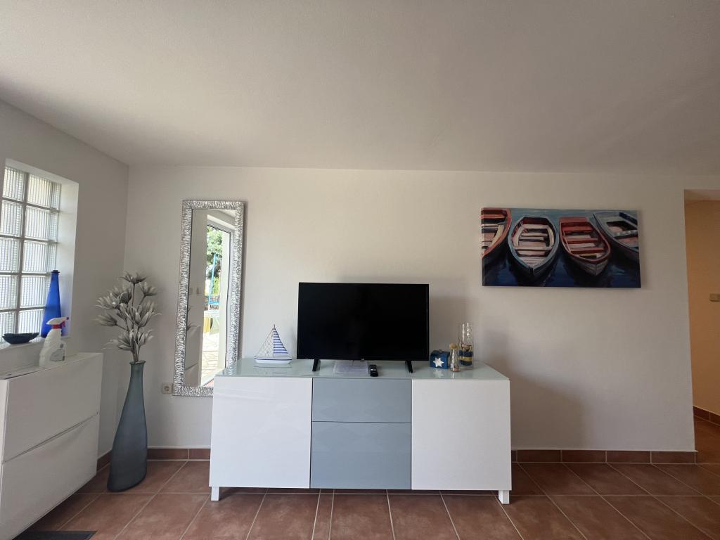 Moderni in bogato urejeni apartmaji v družinski hiši v zelo mirnem delu Malinske. Hiša se nahaja v bližini centra mesta, oddaljenost le 5 minut od mestne tržnice in centra mesta. Ob obali v Malinski, od samega centra, so urejena in opremljena kopališča; prodnate in peščene plaže, primerne za majhne otroke ali osamljene zalive za sprostitev; vsakomur je ponujena izbira. Vsi naši apartmaji so namenjeni za 4 osebe (5. oseba na zahtevo). Imajo ločeno spalnico, dnevno sobo, kuhinjo, WC, hodnik in balkon ali teraso. Apartmaji v pritličju imajo izhod na vrt, apartmaji v prvem nadstropju hiše pa velik balkon s pogledom na morje. Na vrtu je žar in gazebo, ki se lahko uporablja. Vsi apartmaji imajo zagotovljeno parkirišče za vse goste. Apartmaji v prvem nadstropju hiše so opremljeni s klimatsko napravo, tako kot apartma ID 3470 v pritličju. Vsi apartmaji imajo LCD SAT TV, kot tudi brezplačen wifi. Apartmaji v pritličju imajo pomivalne stroje. Pralni stroj je na voljo na zahtevo in z doplačilom.