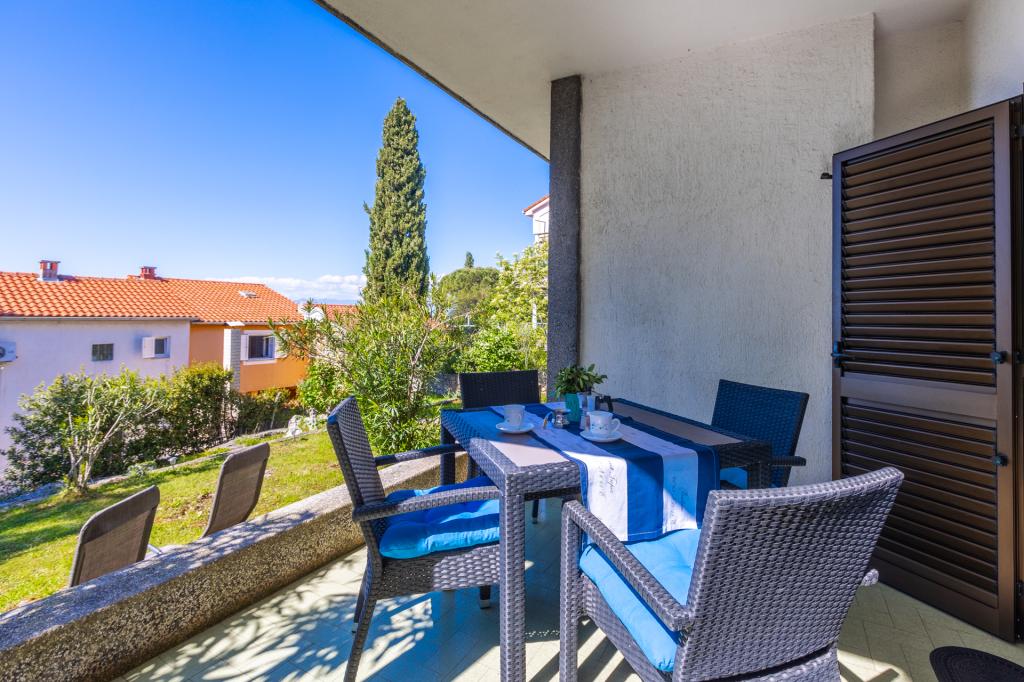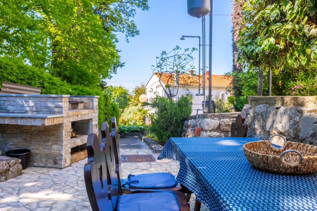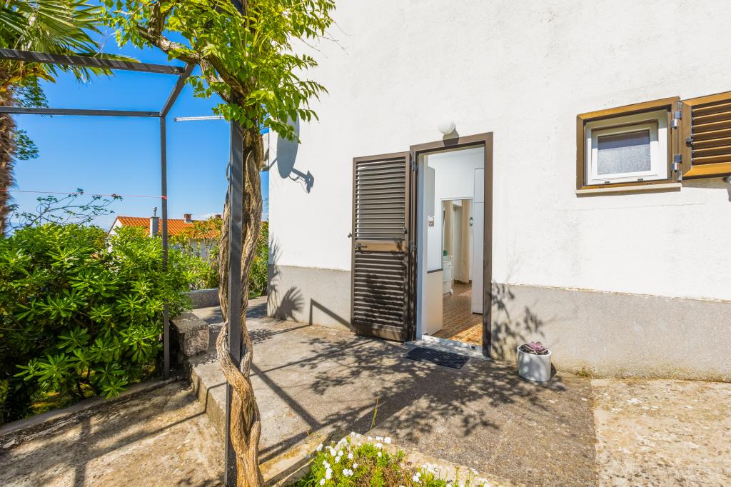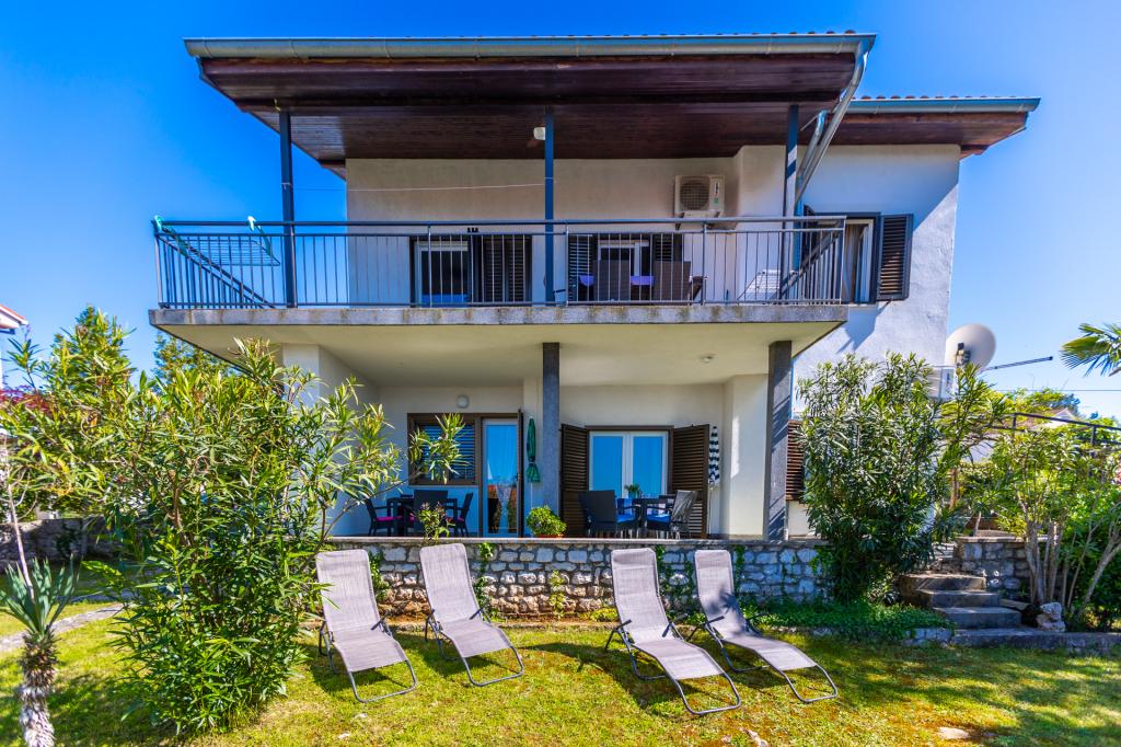 Dva dobro opremljena in urejena apartmaja v pritličju hiše v mirnem delu Malinske, z varovanim pol pokritim parkiriščem, pokritimi terasami s pogledom na morje, urejenim vrtom z mediteranskim rastlinjem, žarom na dvorišču. Apartmaji so klimatizirani, LCD SAT TV, Wi-Fi internet. Opremljene kuhinje - mikrovalovna pečica, aparat za filter kavo, toaster, pomivalni stroj.