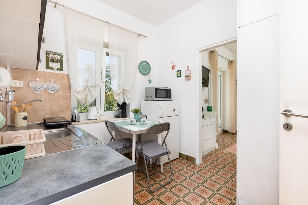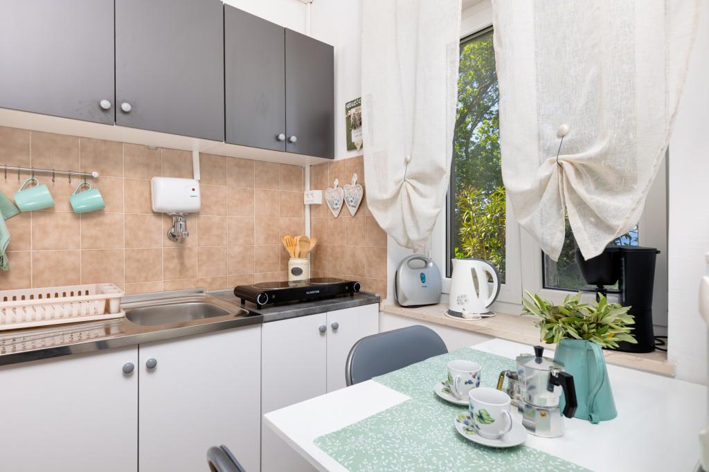 Lepa garsonjera, čista in urejena, zelo lepo urejena in opremljena z vsem, kar potrebujete. Terasa je prostorna, pokrita, s čudovitim pogledom na morje in sončne zahode. Plaža je v bližini, nekaj minut hoje, na plaži pa je prijeten bar z odlično kavo in drugo ponudbo. Izredno lep in prijeten dopust s čudovitima gostiteljema gospo Vlatko in gospodom Damirjem. Zagotovo se bomo vrnili! Maja in Dražen iz Samobora