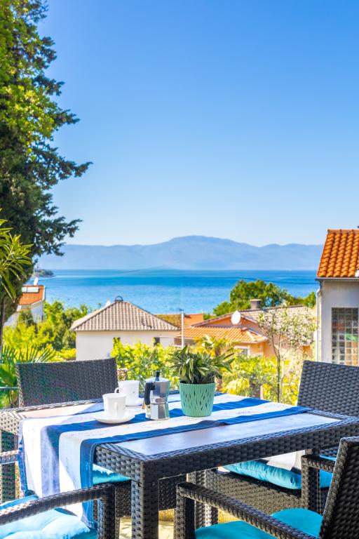 Hvala draga Vlatka in Damir za čudovito gostoljubje v vašem prijetnem kraju. Bivanje v apartmaju (A2+1) nam je bilo zelo všeč! Apartma je dovolj velik za do 3 osebe. Je sveže prenovljen in super čist. Všeč nam je bila ureditev sobe in dekoracija z vsemi lepimi detajli. Na terasi smo zjutraj uživali v kavi s čudovitim pogledom na morje in osupljivimi sončnimi zahodi ponoči. Vzdušje tam je popolnoma mirno, da se umirite od rutine. Vsa posteljnina in brisače so bile super čiste in dišeče. Kuhinja je zelo dobro opremljena, vključno z velikim hladilnikom, pečico in pomivalnim strojem. Lokacija apartmaja je zelo priročna: le dve minuti hoje ob morju. Lahko se sprehodite levo do Porata in desno do Malinske ob obali. Vsi v enem smo se imeli čudovito!