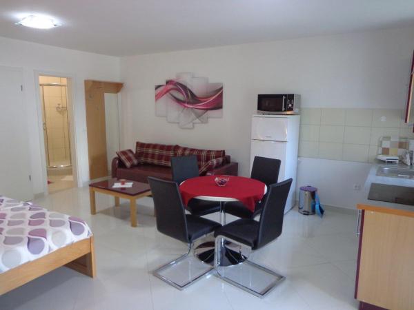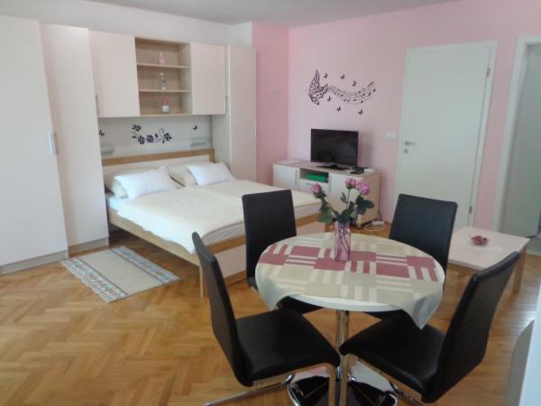 Apartmaji se nahajajo 30 metrov od trgovin in restavracij in 200 metrov od plaže. Obdan z zelenjem, Apartmaji Zora je prava oaza miru in tišine, ki je potrebna za pravi oddih. Parkirišče je zagotovljeno.