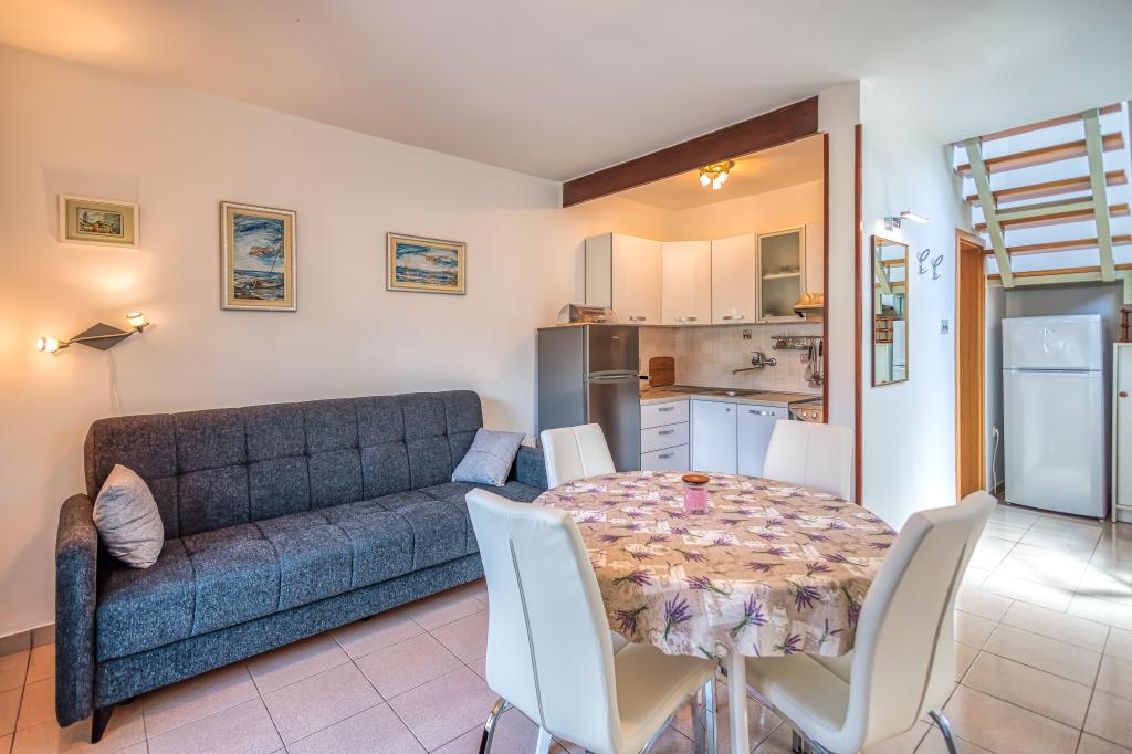 Popolnoma opremljen štiri-sobno duplex stanovanje z lastnim parkiriščem in vrtom. Sestavljen je iz terase, balkon, kuhinja, dnevna soba, WC / kopalnica in dve spalnici. Apartma se nahaja na koncu ulice, ki ni zaseden. Oddaljenost od plaže in restavracije, pet minut hoje od centra mesta 20 minut hoje po sprehajalni poti ob morju.
