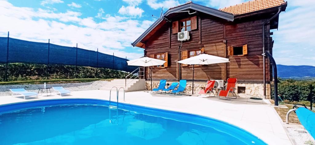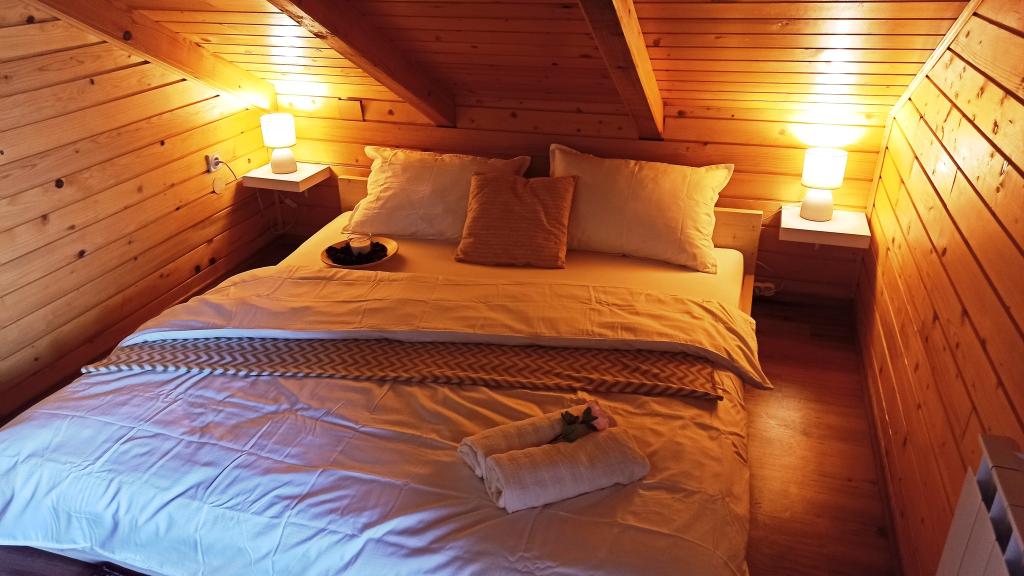 Počitniška hiša King's Lodge je lesena hrastova hiša, ki se nahaja v Hrvaškem Zagorju s pogledom na planino Ivanščico ... Na razpolago: - 3 ločene spalnice - 2,5 kopalnice - prostorna dnevna soba s kaminom - savna - žar s pokrito teraso - soba za druženje in igra (pikado, biljard, PS, družabne igre...) - zunanji kamin - otroško igrišče - otroški in bralni kotiček