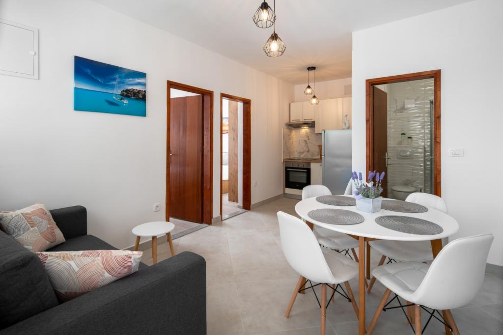 Vse pohvale gostiteljem, zelo prijazni Stanovanje je lepo, vse je novo, čisto in udobno Plaža je čez cesto, brez gneče, ki ljubi mir Bilo nam je lepo in ga priporočam vsem z otroki, ki imajo radi manjše in tišje kraje. Tudi bazen smo veliko uporabljali, otroci so uživali, ni pravil, samo sproščeno in prijetno