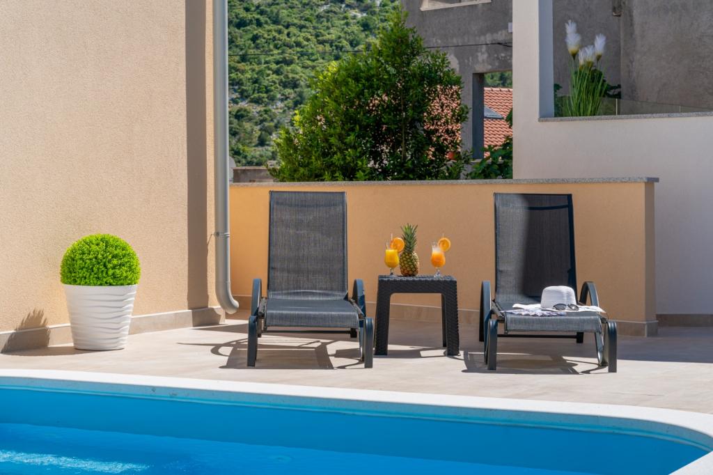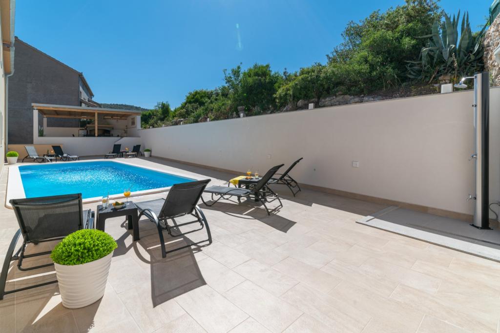 Verjetno ena najboljših namestitev na Hrvaškem. Vse je zelo dobro vzdrževano, popolnoma opremljeno, moderno in klimatizirano. Ob bazenu je terasa s popolnoma opremljenim žarom. Ob bazenu so ležalniki, tuš in stranišče. Razgledi iz vile so fantastični. Lastnica Marina je čudovita in topla oseba. Bila je zelo ustrežljiva in nas je celo sprejela z lokalnim mesom, sirom in kruhom. Plaža (prodnata) je oddaljena dobesedno dve minuti. Zelo priporočam! Z veseljem se bomo vrnili.