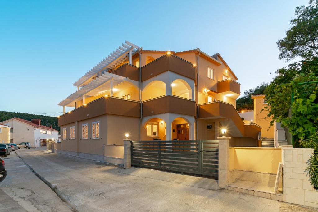 Vila A je čudovita vila, ki se nahaja v mirnem kraju Marina v bližini Trogirja in obsega 6 apartmajev, bazen, zunanji žar, zasebno parkirišče.Oddaljenost od plaže je 70m, do centra mesta pa 500m.