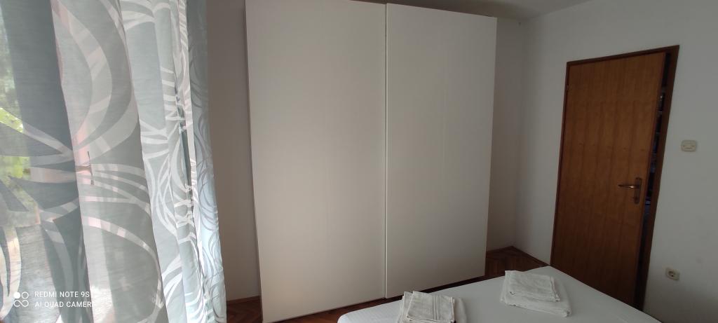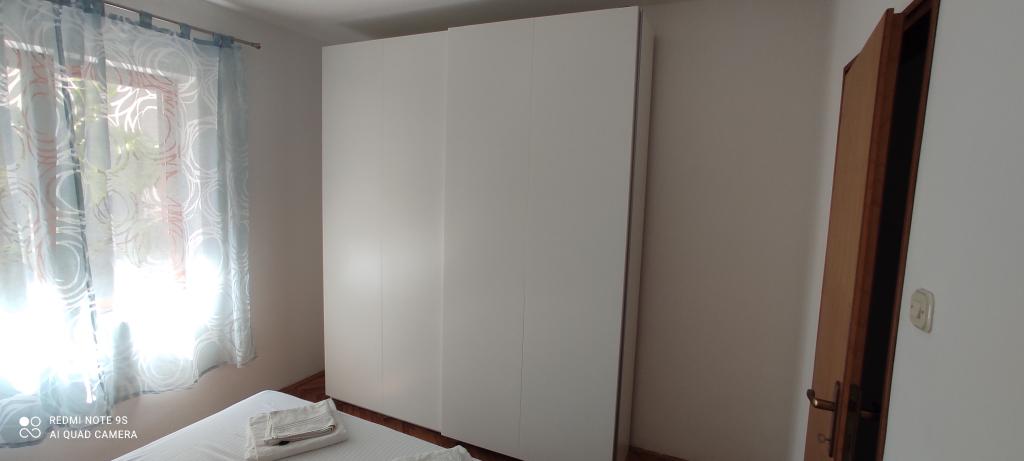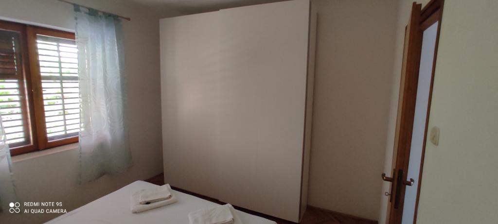 V mirnem mestecu Miholašćica, znanem po čudoviti prodnati plaži, 26 km južno od mesta Cres, nudimo 2 popolnoma opremljena apartmaja, vsak po 35 kvadratnih metrov, s kuhinjo, dnevno sobo, kopalnico, spalnico in teraso ter en apartma z dvema spalnicama, dnevno sobo, kopalnico. kuhinjo in teraso v skupni izmeri 55 kvadratnih metrov.V sklopu vrta nudimo 4 parkirna mesta in kamin z žarom. Plaža je od same hiše oddaljena približno 100 m.