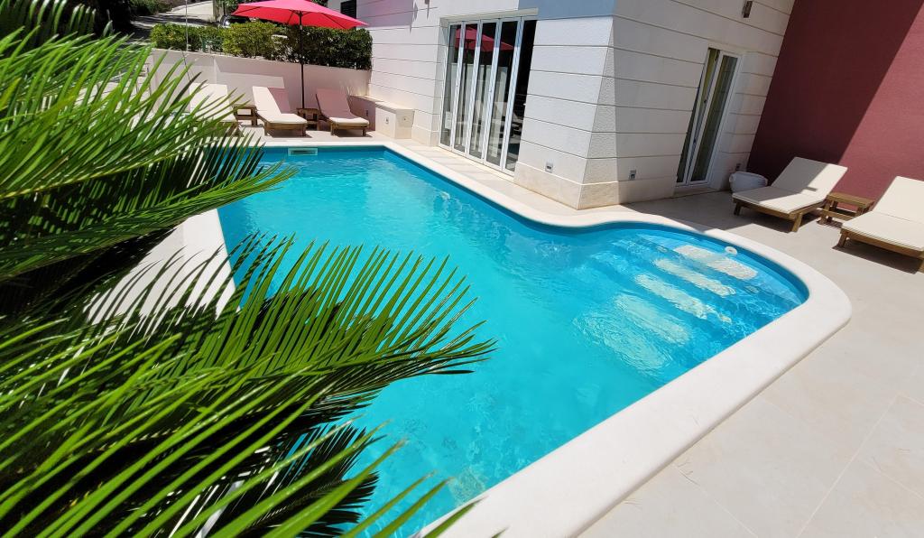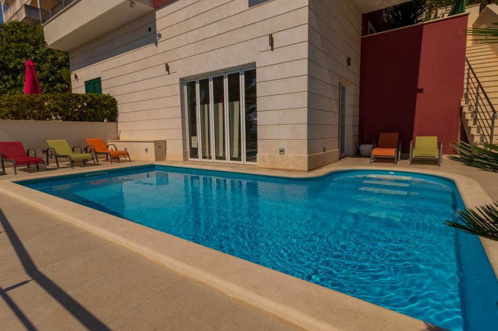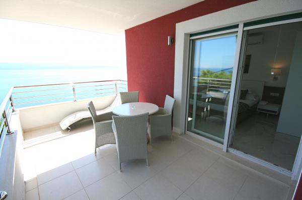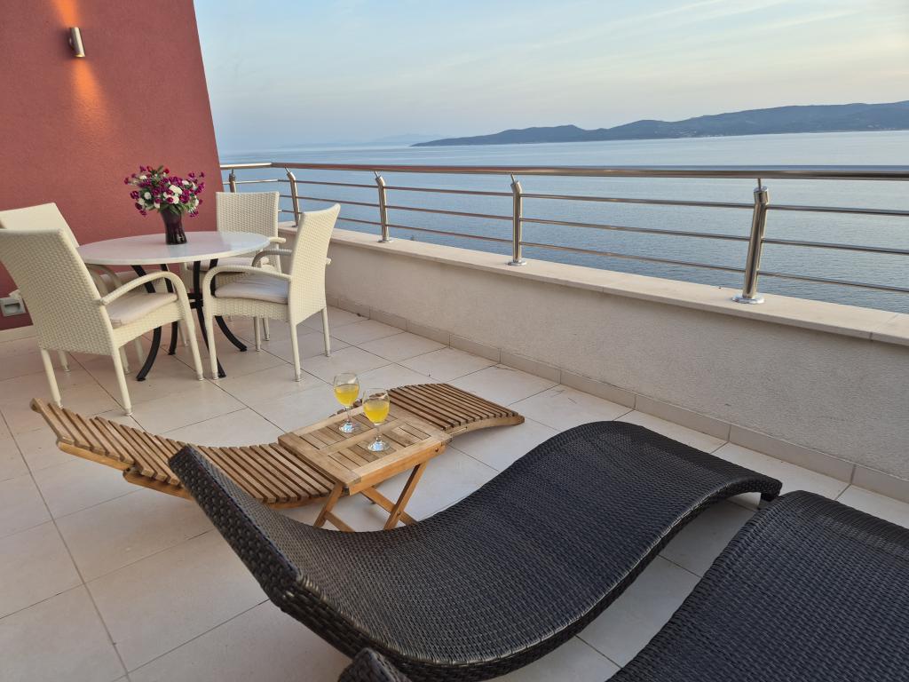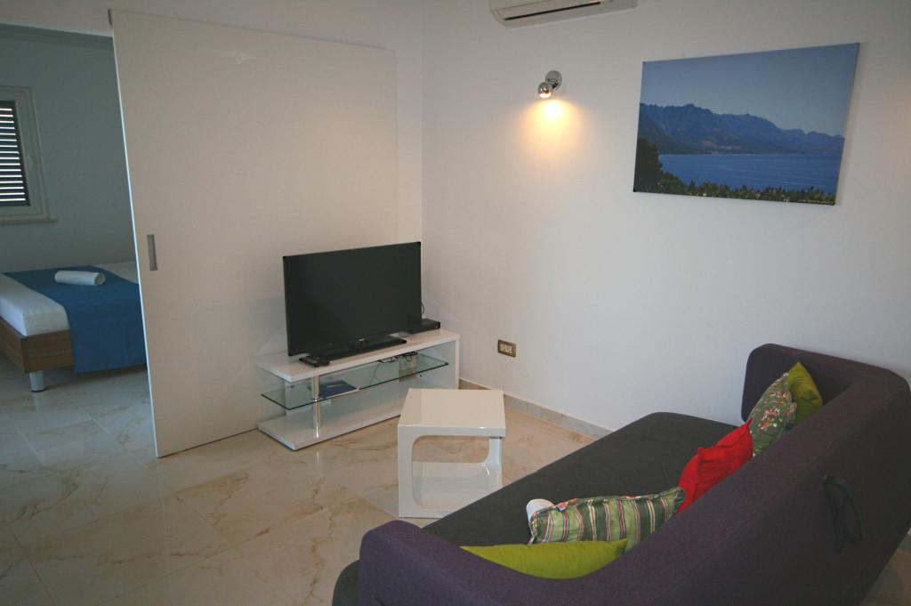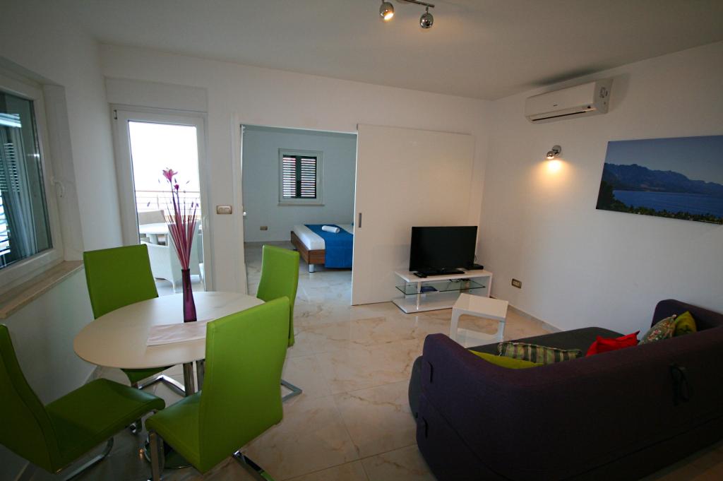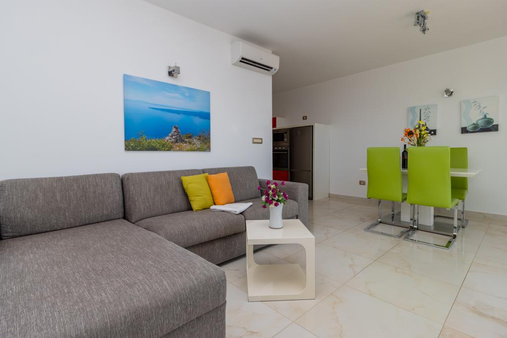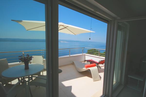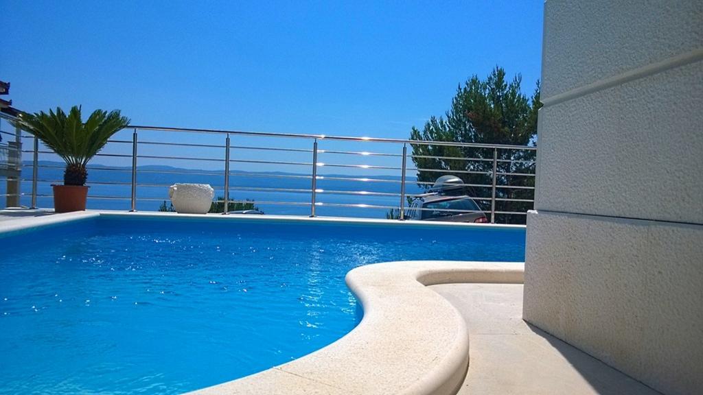 Villasanta De Luxe je novozgrajena luksuzna vila z zunanjim bazenom z masažo, ki se nahaja v prvi vrsti do morja nad plažo in je sestavljena iz šestih vrhunskih in popolnoma opremljenih apartmajev. Apartma ima veliko teraso s čudovitim panoramskim razgledom na morje in bližnje otoke. Vsak apartma ima brezplačen WIFI internet, vse sobe so klimatizirane, kuhinje pa so popolnoma opremljene. Vsak apartma ima parkirno mesto. Ob hiši se nahaja žar in prostor za druženje, prostoren vrt in čudovit razgled na morje. Odlične prometne povezave (letališče Split 50 km, Split 35 km, Omiš 10 km, Makarska 20 km). Ponujamo tudi prevoz z letališča.
