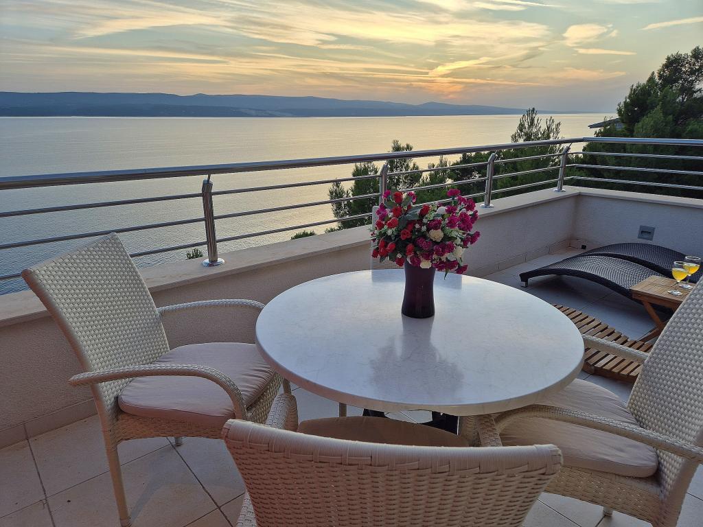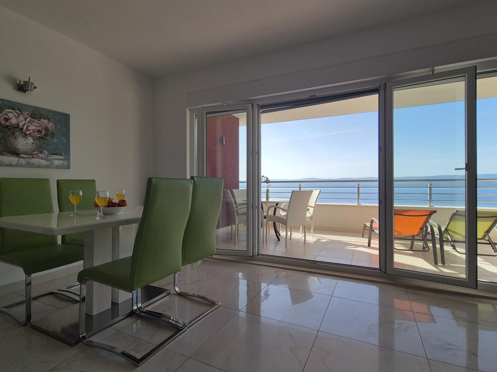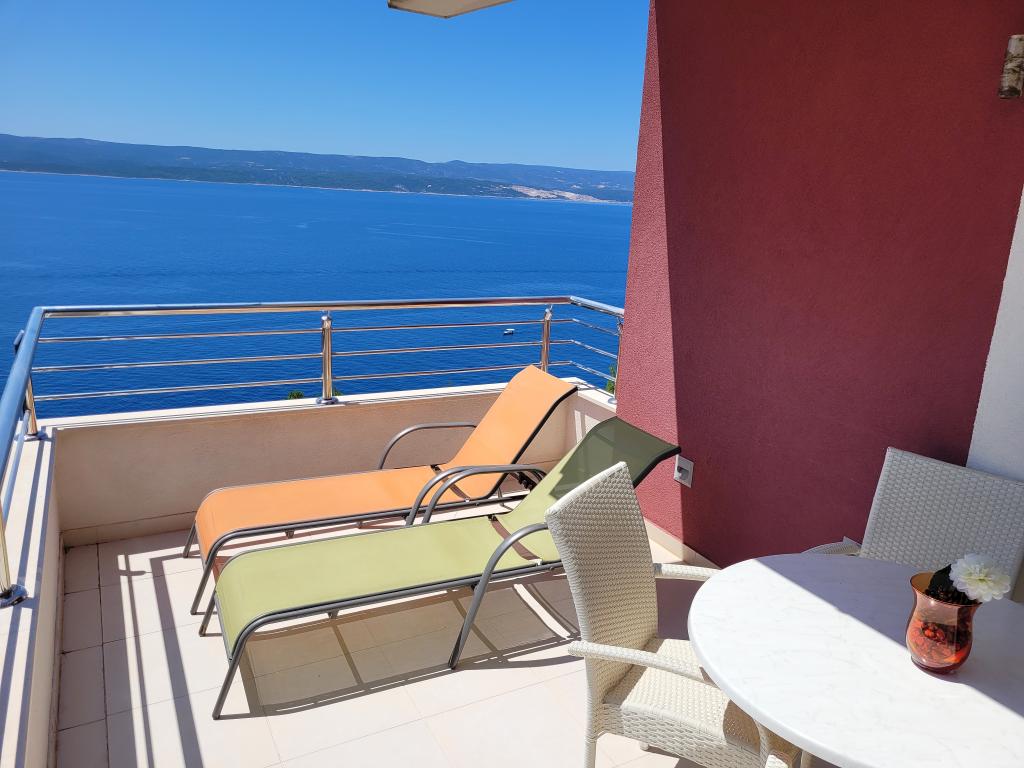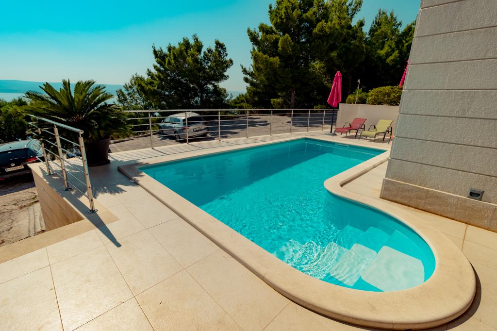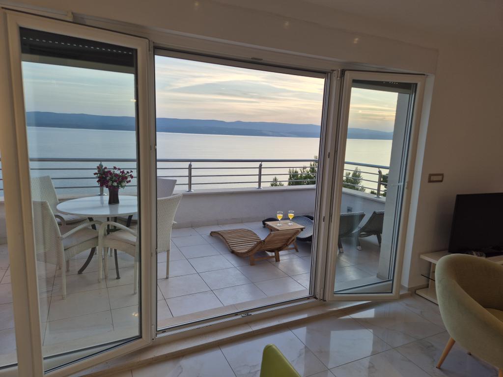 Novozgrajena vila se nahaja nad čudovito plažo. Vsak gost ima na voljo dva ležalnika za celotno bivanje, tuš na plaži in prostor za žar. Kot dodatne storitve ponujamo fitnes, kajake, gorska kolesa, izlete z našim čolnom, brezplačen prevoz do znanih restavracij itd. Zelo dobre povezave z bližnjimi mesti: - 1,0 km do Mimice (supermarket, pošta, kavarna, bari in restavracije, ...) - 8 km do Brele - vse turistične znamenitosti (šport, restavracije, sprehajališča itd.) - 10 km do Omiša - znano staro mestno jedro, ribarnica (vsak dan sveža), poletni festival (klape), festival morskih piratov, rafting, najem čolnov, izleti itd. - 20 km do Makarske - 36 km do Splita
