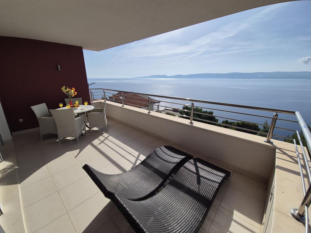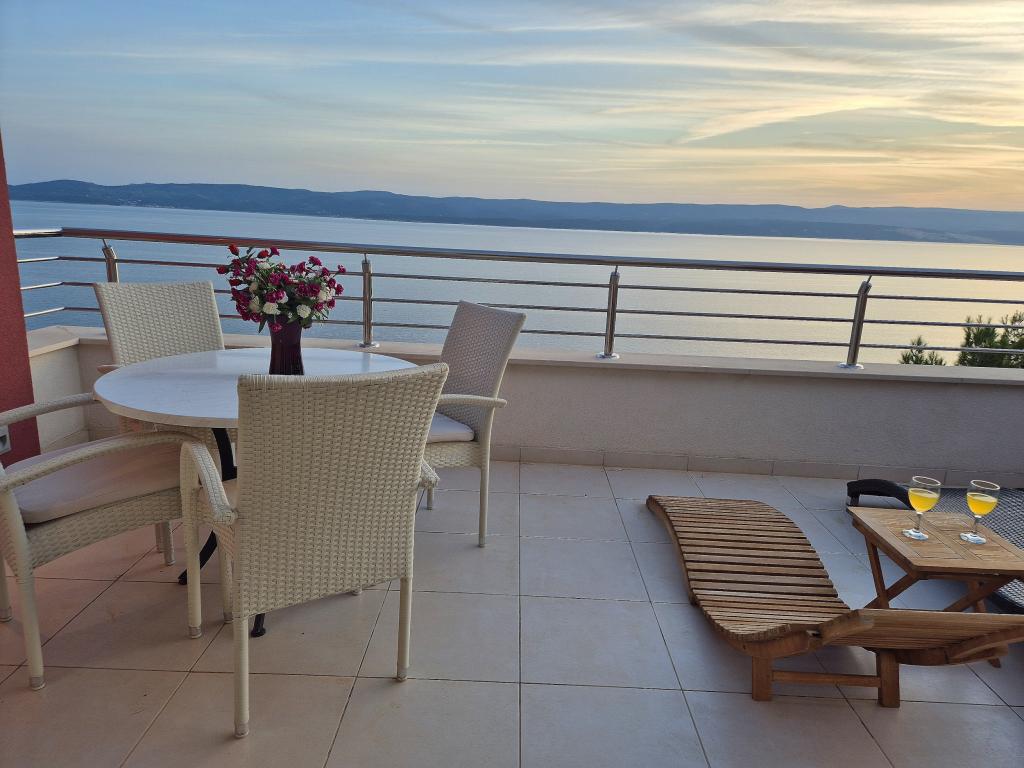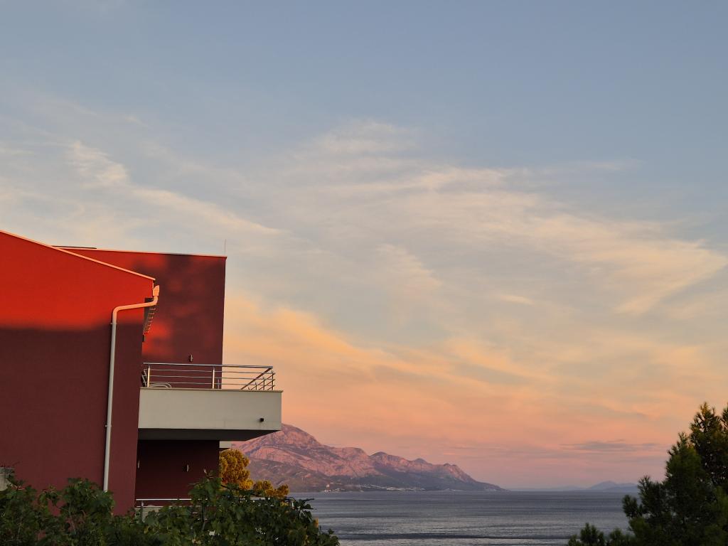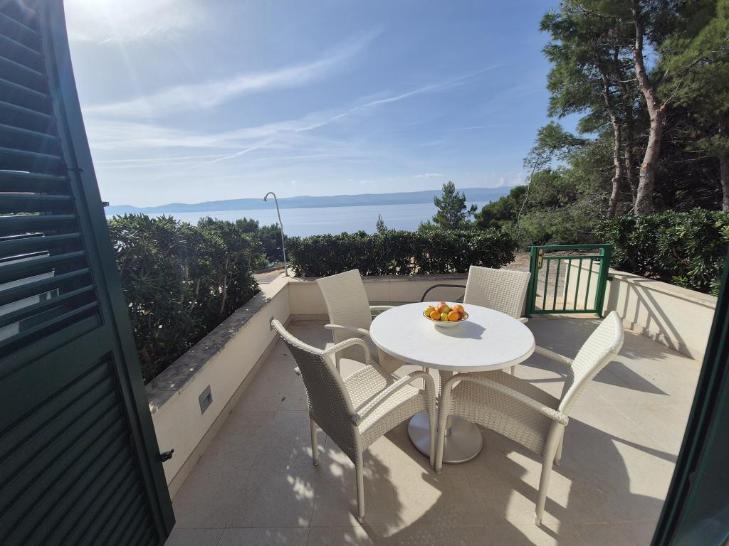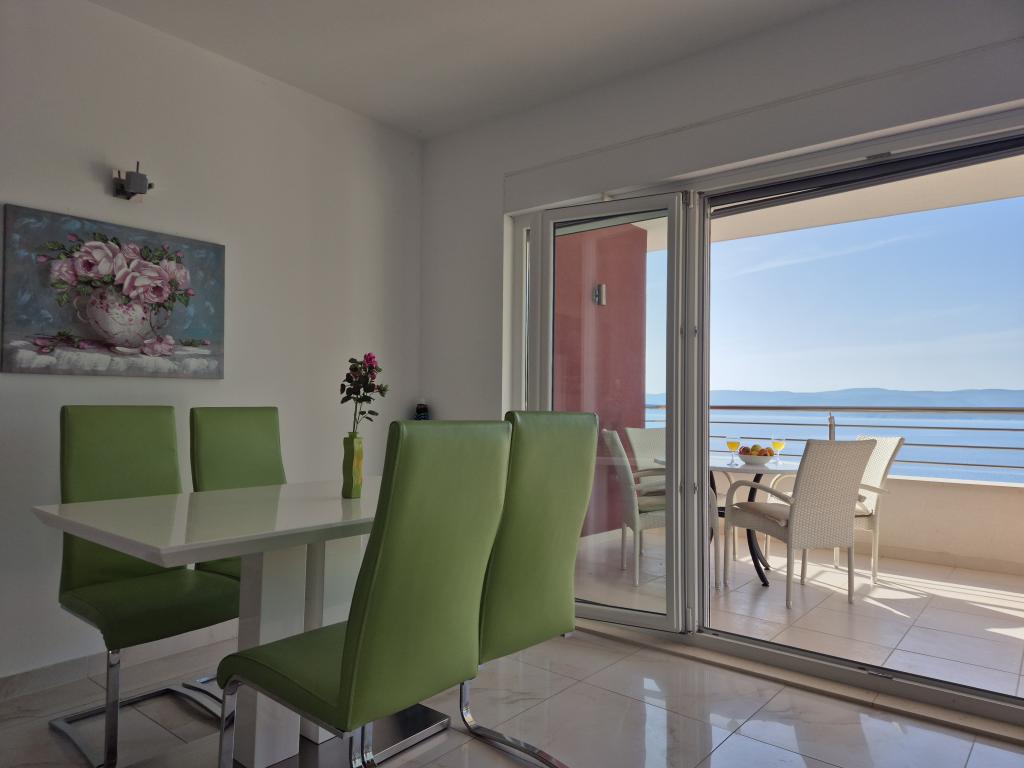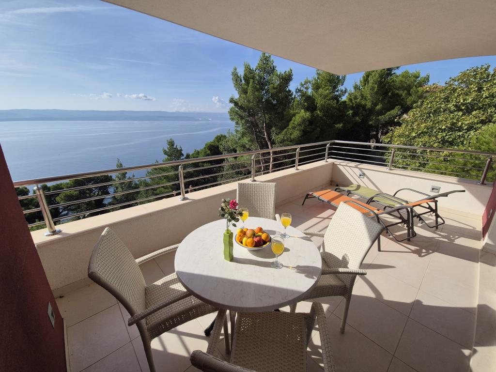 Novozgrajena vila se nahaja nad čudovito plažo. Vsak gost ima na voljo dva ležalnika za celotno bivanje, tuš na plaži in prostor za žar. Kot dodatne storitve ponujamo fitnes, kajake, gorska kolesa, izlete z našim čolnom, brezplačen prevoz do znanih restavracij itd. Zelo dobre povezave z bližnjimi mesti: - 1,0 km do Mimice (supermarket, pošta, kavarna, bari in restavracije, ...) - 8 km do Brele - vse turistične znamenitosti (šport, restavracije, sprehajališča itd.) - 10 km do Omiša - znano staro mestno jedro, ribarnica (vsak dan sveža), poletni festival (klape), festival morskih piratov, rafting, najem čolnov, izleti itd. - 20 km do Makarske - 36 km do Splita