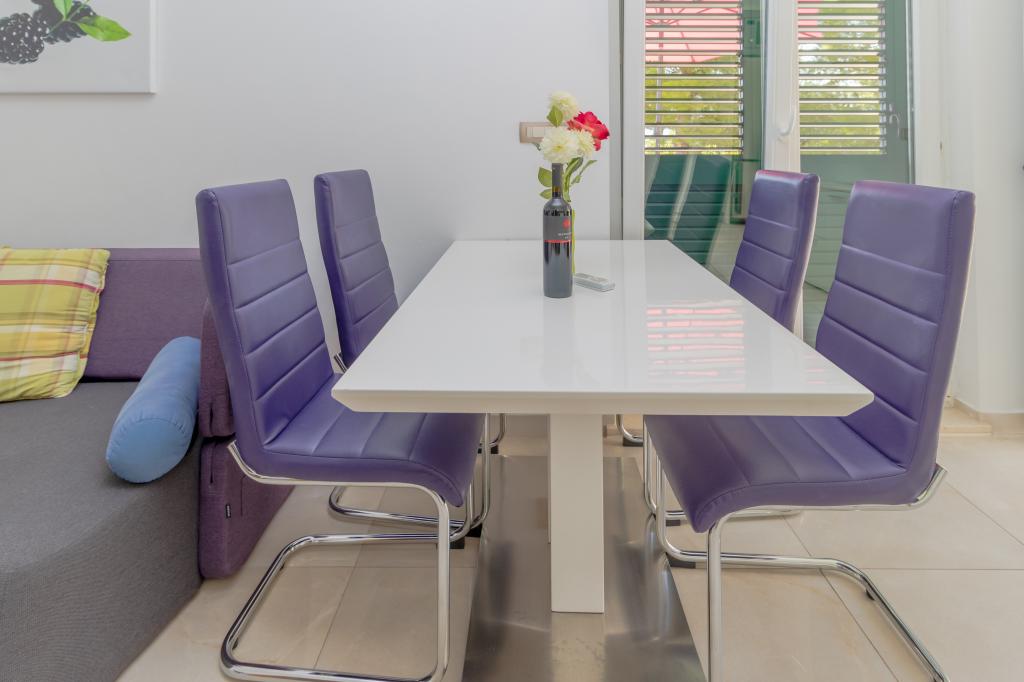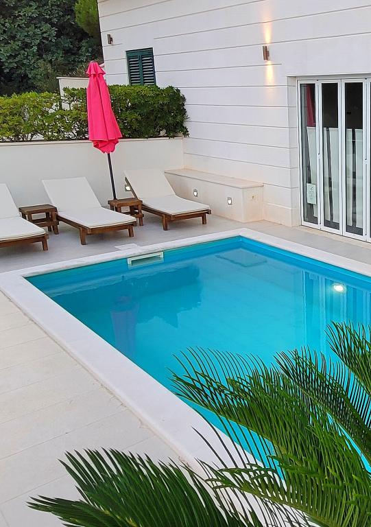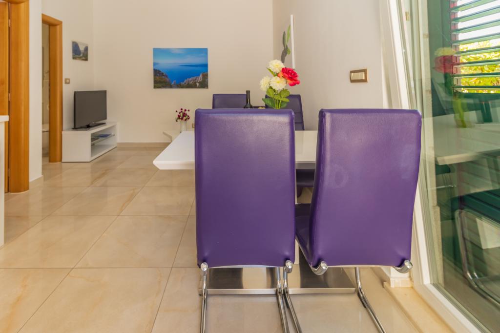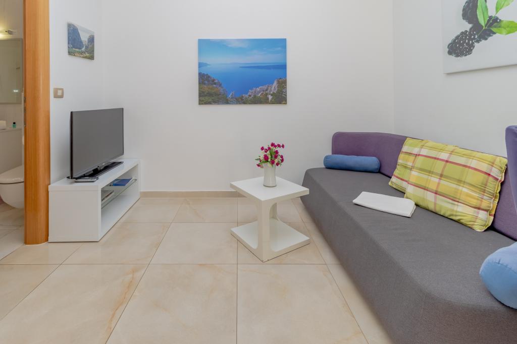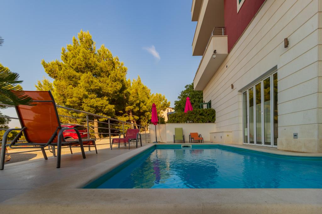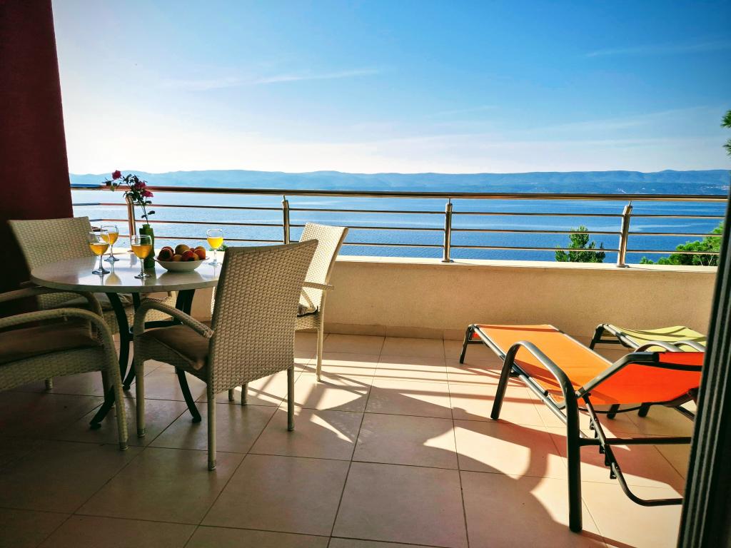 Novozgrajena vila se nahaja nad čudovito plažo. Vsak gost ima na voljo dva ležalnika za celotno bivanje, tuš na plaži in prostor za žar. Kot dodatne storitve ponujamo fitnes, kajake, gorska kolesa, izlete z našim čolnom, brezplačen prevoz do znanih restavracij itd. Zelo dobre povezave z bližnjimi mesti: - 1,0 km do Mimice (supermarket, pošta, kavarna, bari in restavracije, ...) - 8 km do Brele - vse turistične znamenitosti (šport, restavracije, sprehajališča itd.) - 10 km do Omiša - znano staro mestno jedro, ribarnica (vsak dan sveža), poletni festival (klape), festival morskih piratov, rafting, najem čolnov, izleti itd. - 20 km do Makarske - 36 km do Splita