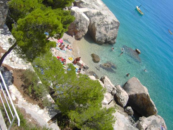 Radi bi se vam zahvalil za lepe počitnice, tretji na tem mestu. Namestitev se nahaja v mirni vasici na pobočjih Biokova, zajetega v borovih gozdovih na, ki spadajo v morje. Kamnita plaža ponuja veliko zasebnosti in prekrasnim pogledom na morje in otok Brač. Enako stališče ima svoj lokal. Apartmaji so okusno urejeni z ločeno sobo za otroke in starše. Gostitelji, Jure in Sandra sta izjemni ljudje. Prijazni, gostoljubni, s smislom za humor. Bili so obtičali v srcu. Poslastica je domače vino in pečene lignje in ribe. Jindřich Havránek družina.