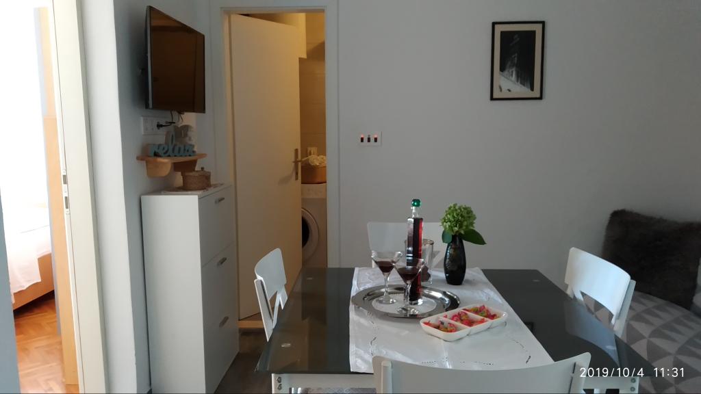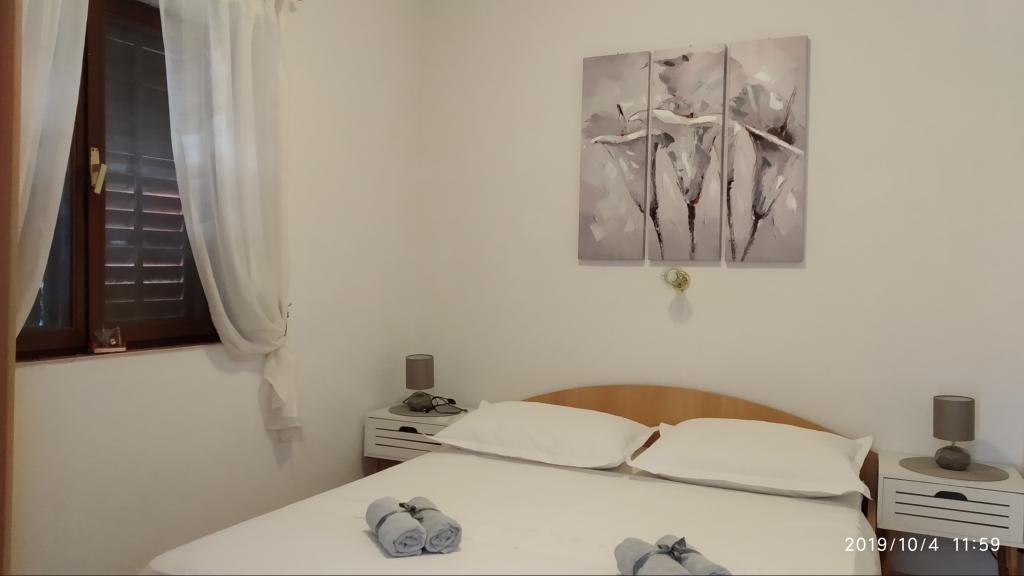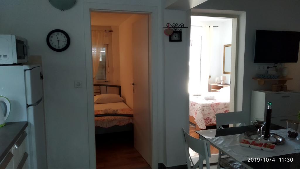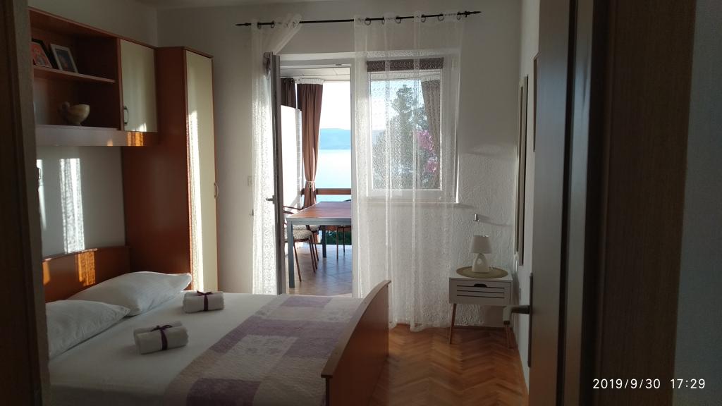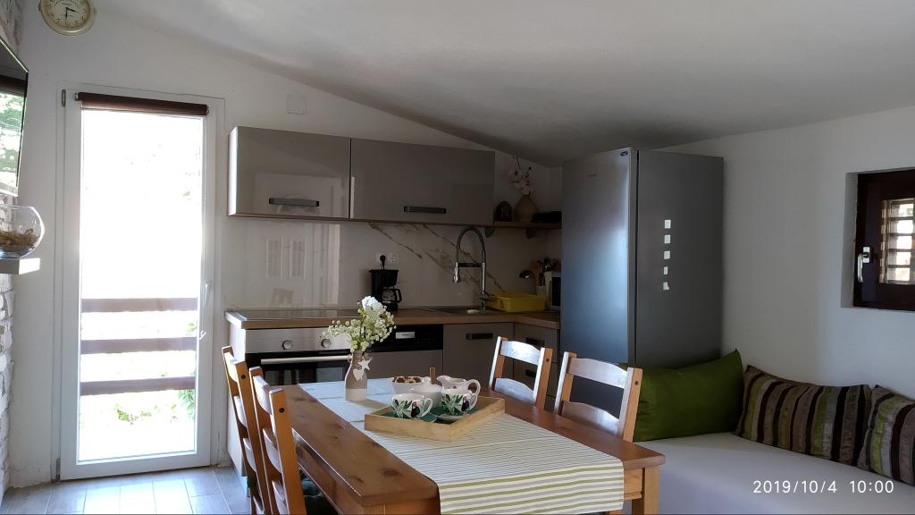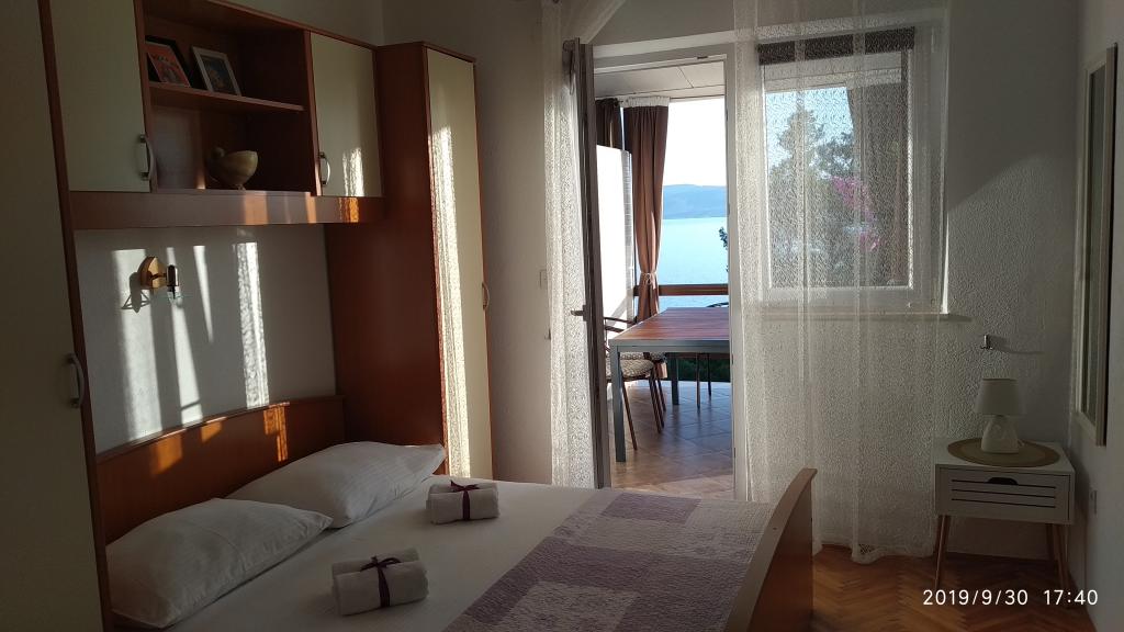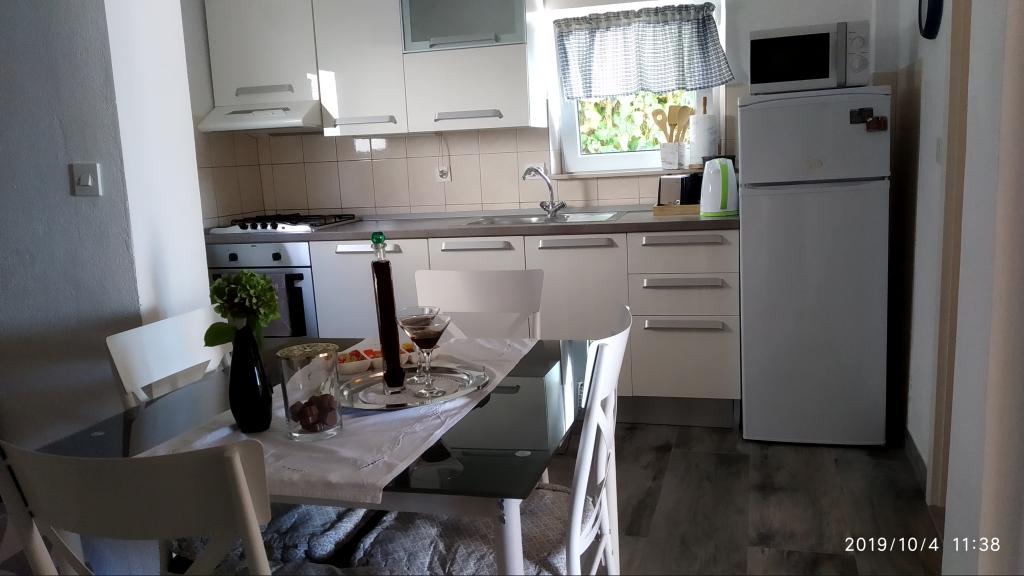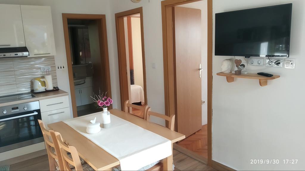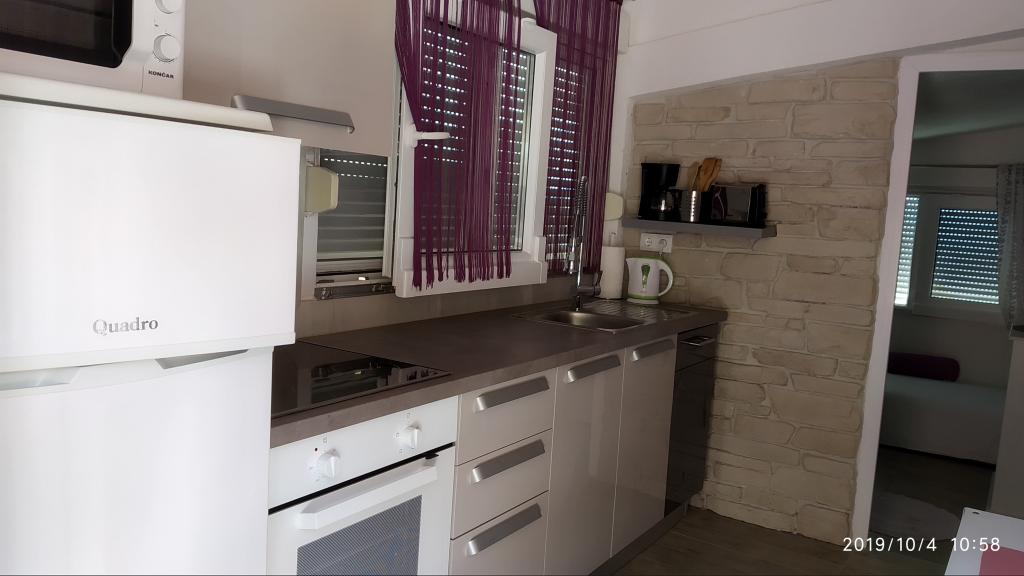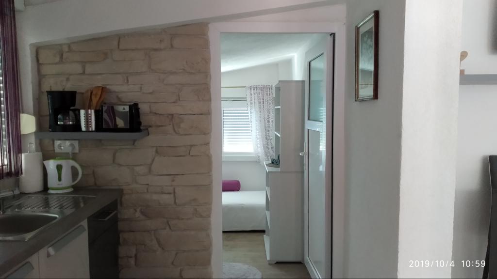 Stanovanje je bilo super. Bili smo tam od 14.8 do 21.8.2018. Ni bilo nič narobe. Gostitelji so imeli odprto uho za vse. Morje je bila najlepša stvar, ki sem jo kdajkoli imela. In na Hrvaškem sem bil veliko. Voda je bila tako čista in čista. Samo sanje. Otroci lahko skočijo z različnih višin skal. Vendar se morate zavedati, da imate na plaži 150 stopnic. Pot do apartmaja je zato izčrpna. Edina dobra stvar je, da je vzpon v senci. Za družine z majhnimi otroki je kraj nič. Na plaži je imel najemodajalec komoro, kjer si lahko položite stvari. To je bilo zelo priročno. Na plaži ni bilo kafea ali stranišča. Apartmaji se nahajajo na zelo strmi in ozki ulici. Ni problema za dobre voznike in močne avtomobile. Parkirišče pred hišo je zelo dobro. Na glavni ulici je trgovina. Imeli smo oba stanovanja zgoraj. Oba sta imela velike balkone. Osebno sem obžaloval, da na balkonu nisi mogel odstraniti ločitve. V nasprotnem primeru bi imeli skupen ogromen balkon. Še vedno bi lahko jedli skupaj. Zunaj je tudi sedež. Na zgornjem apartmaju je pralni stroj. Na nekaterih oknih so mreže proti komarjem. Na žalost naša spalnica ni imela možnosti za zatemnitev. Pogled na apartmaje je bil fantastičen.