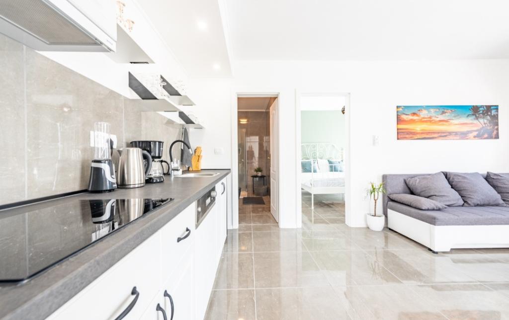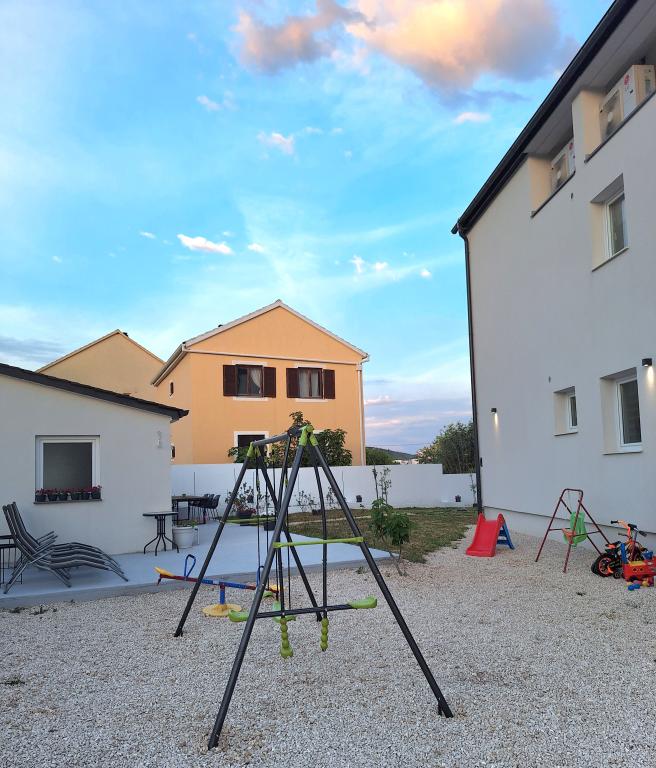 Moderni in popolnoma opremljeni apartmaji v mirnem delu Maslenice. Objekt se nahaja v centru, 250 m hoje do trgovine, 900 m hoje od glavne plaže. Na poti do plaže greste mimo otroškega igrišča, več trgovin, stojnice z zelenjavo in sadjem ter pekarne.