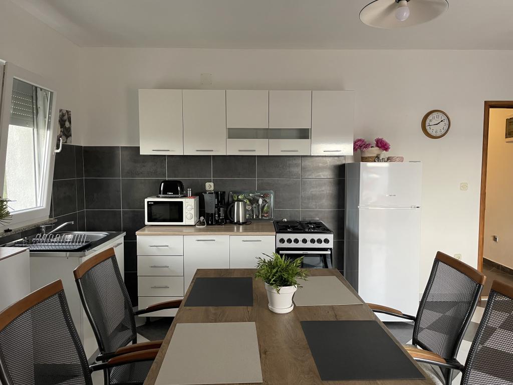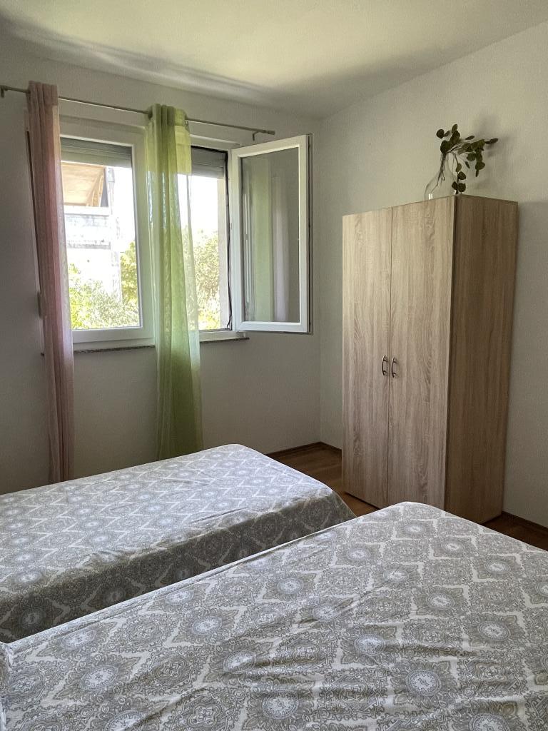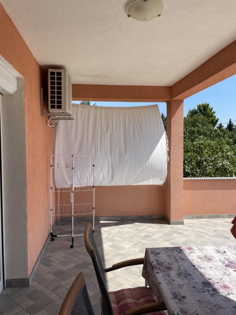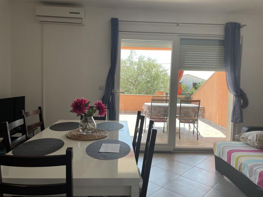 Počitniška hiša 60 m2 plus terasa 31 m2 se nahaja v centru Maslenica v bližini Zadra na parceli 1.273 m2, od plaže oddaljena 5 minut hoje. Lastniki ne živijo v hiši, in gostje so bivali v celotni stavbi. Hiša je sestavljena iz dve spalnici, kopalnico, kuhinjo dnevna soba in hodnik. Terasa ima zaščito pred soncem. Posteljnina in brisače se menjajo vsakih 7 (sedem) dni za bivanje več kot 7 (sedem) dni. Kuhinja je opremljena z vso potrebno opremo in potrebščine posode in jedilnico. Hiša je opremljena z likanje stroj, sušilni stroj, sušilec za lase, aparat za kavo in kotliček. Uporaba interneta, klima, SAT TV, parkirišče, sušilniki za lase in pralni stroji niso naplaćuje.Kuća se nahaja na mirni lokaciji Maslenice z oljkami in drugimi drevesi okrog zgradbe. Dobrodošli!
