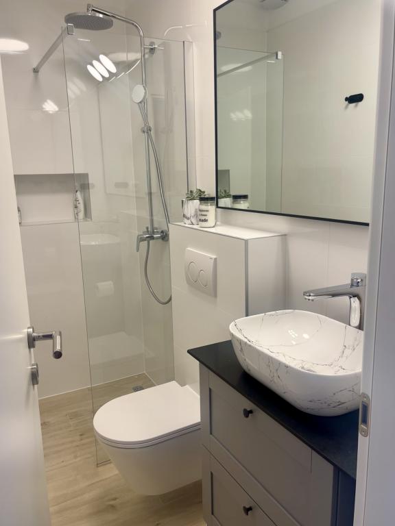 Stanovanje je super, čisto, urejeno in razgled je čudovit! Morje je 2 minuti hoje od apartmaja, kar nam je z dvema otrokoma veliko pomenilo! Plaža je čista, primerna za otroke! Gostitelji v pomoč, za vse, kar potrebujemo, imamo! Lepa lokacija, mir, tišina in narava vse, kar potrebujete za pravi dopust! Se zagotovo spet vidimo!