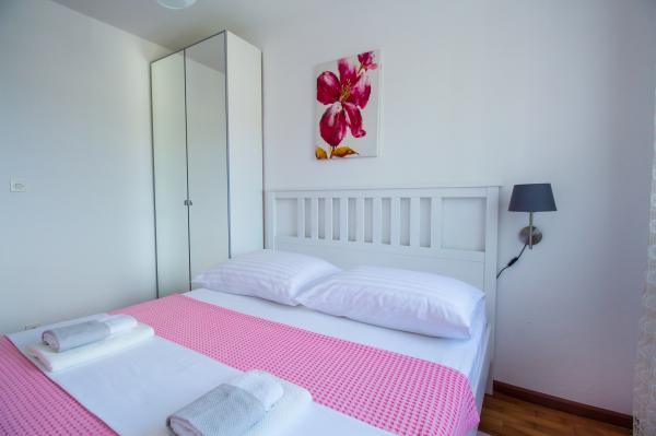 Jaz in moja družina sta ostala tukaj skoraj dva tedna. Apartma je okusno urejen in primeren za družino tudi s tremi otroki. Omeniti velja dve terasi s čudovitim razgledom na Jadransko morje. Gostitelji so bili zelo prijazni in koristni. Hiša ima zelo priročno pot do plaže in je manj kot 200 metrov.