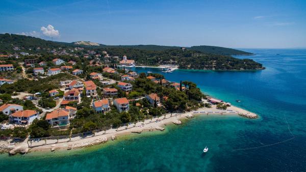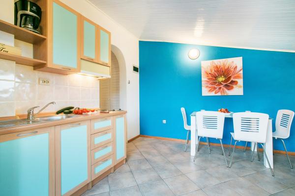 Lepa družinska kamnita hiša obkrožena z borovim gozdom se nahaja v mirnem delu enega izmed najlepših sredozemski zaliv. Ponujamo vam dve popolnoma opremljene apartmaje le nekaj korakov od obale, ena obrnjena proti vzhodu in zahodu druga. Apartmaji imajo terase s pogledom na morje, sodobno opremljen, čist in so udobne, imajo vse, kar potrebujete za krajše ali daljše bivanje. Apartmaji Blue Paradise so kot nalašč za pobeg od hitrega življenja danes v mirno in sproščujoče počitnice v sončnih oljčnih nasadov; kristalno čisto morje, neokrnjena narava in Mediteran kot je nekoč bil.