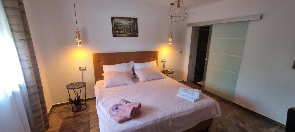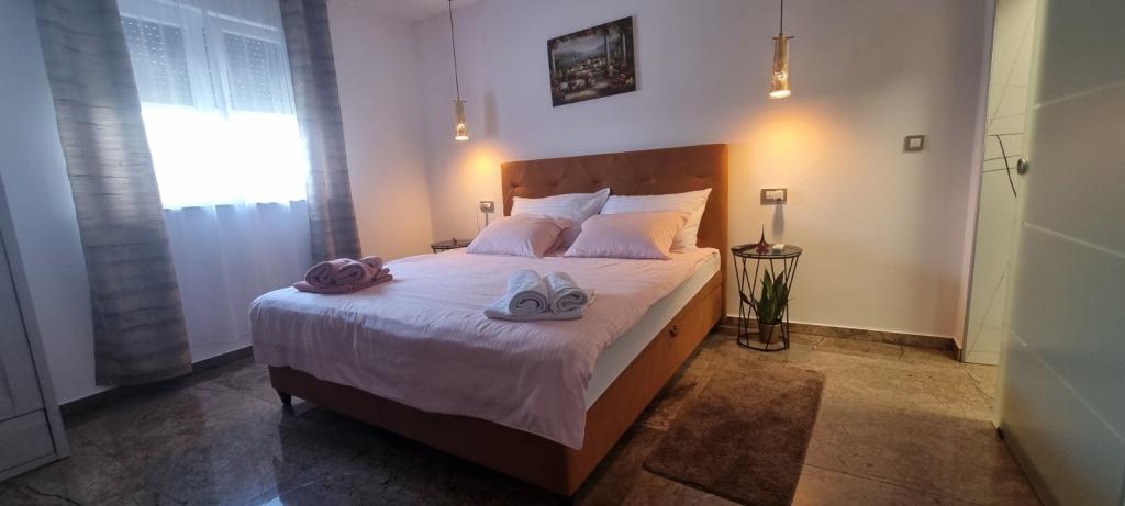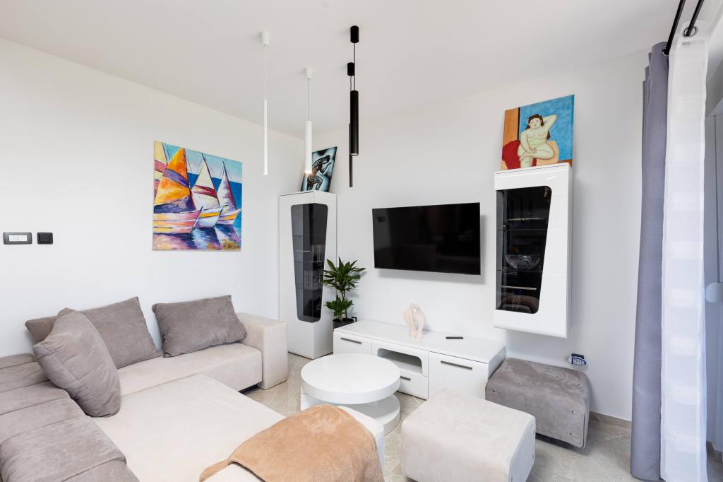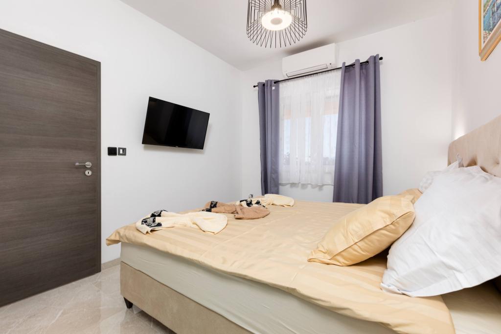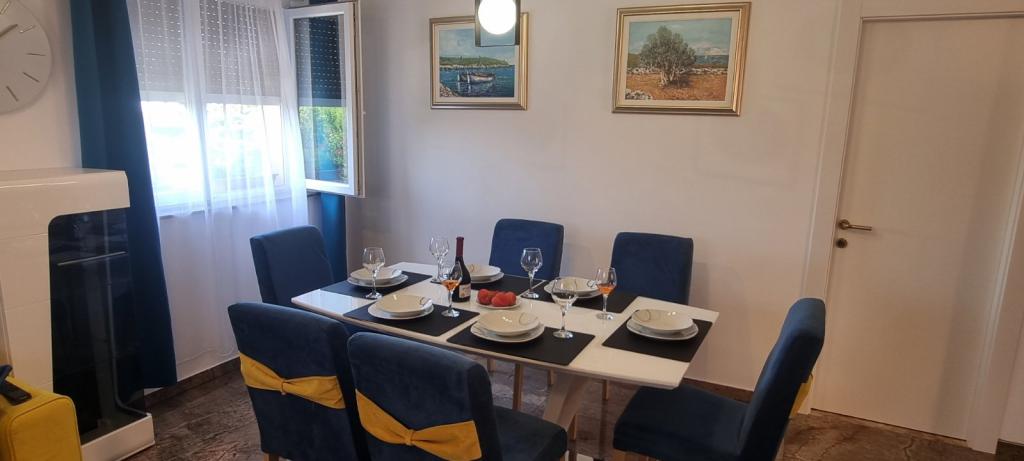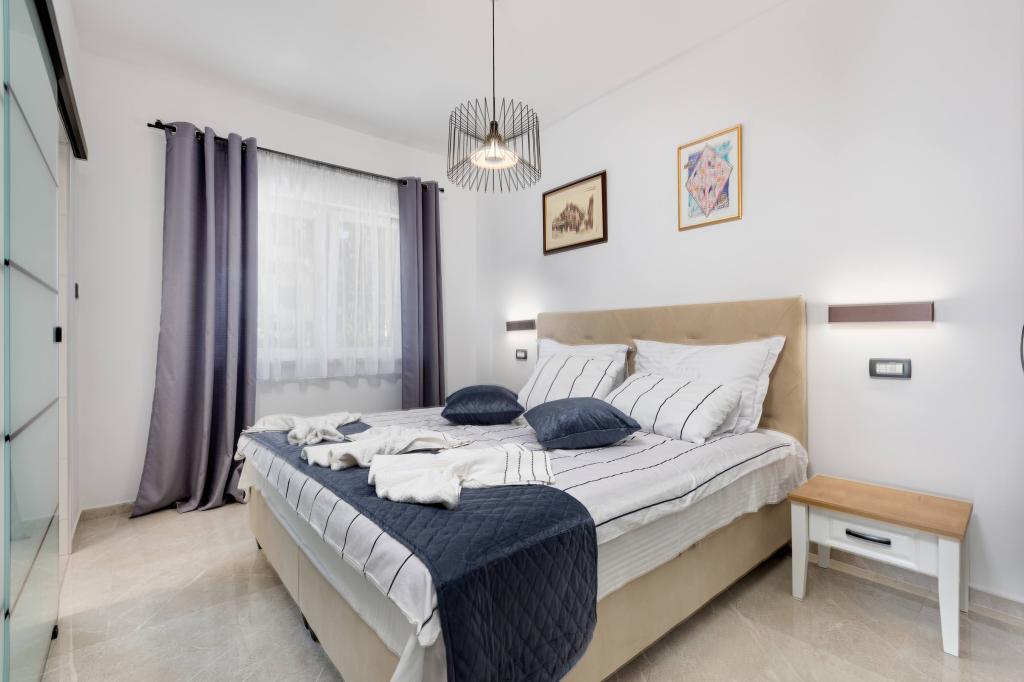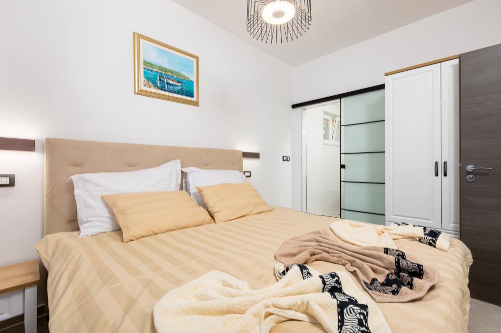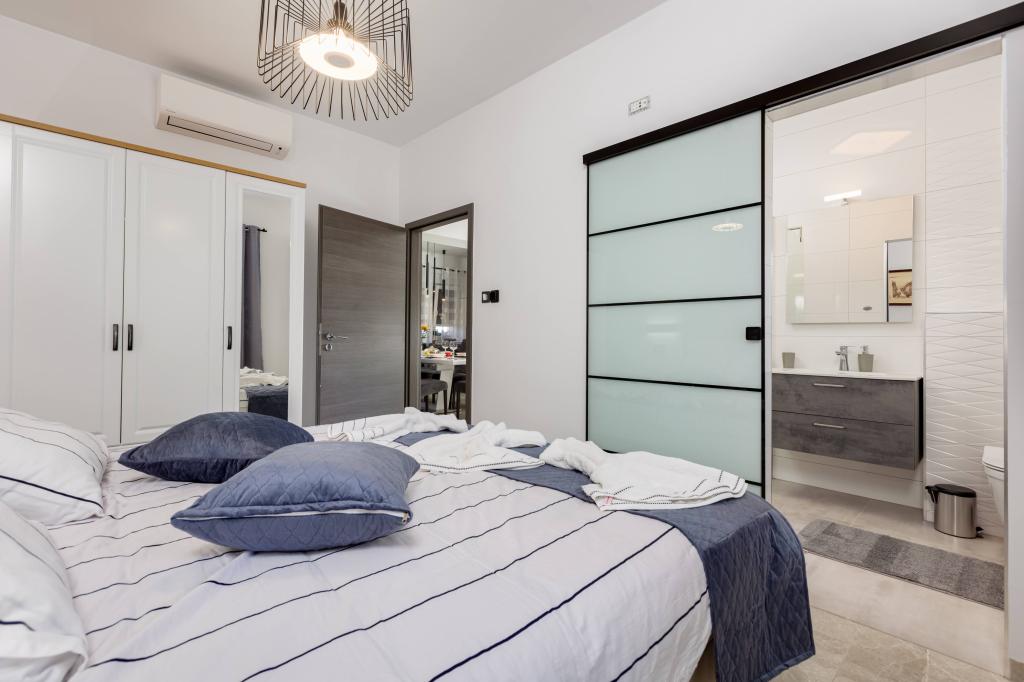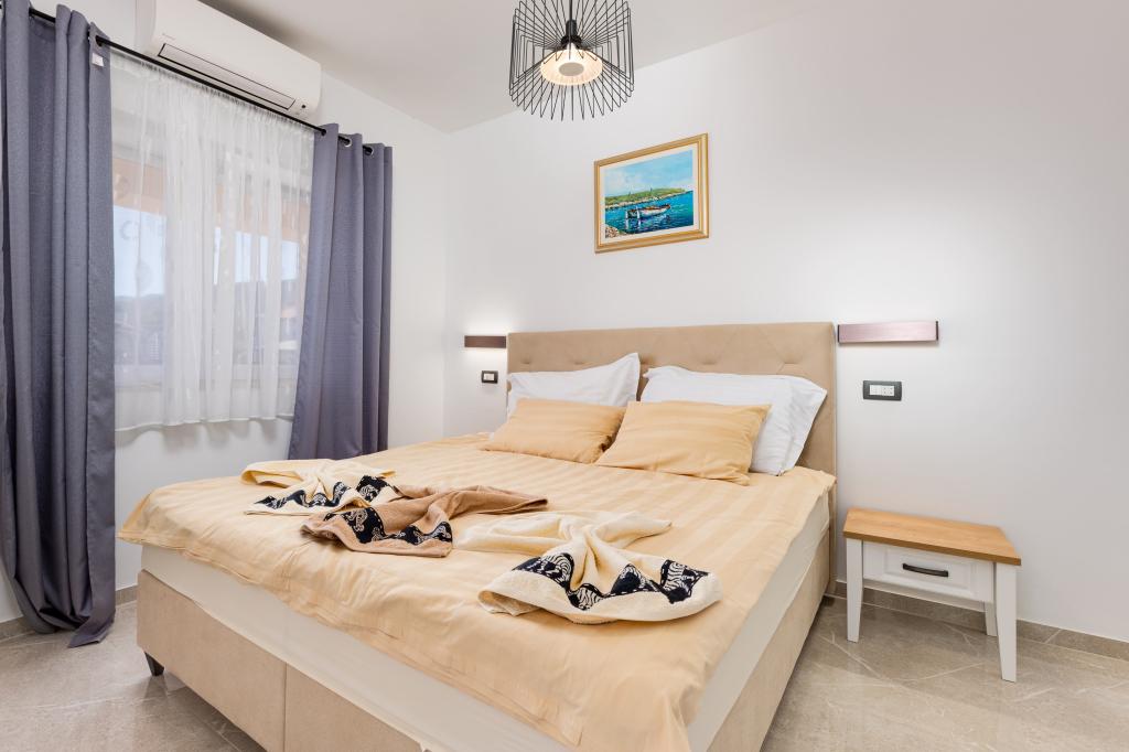 Apartma First Mary je luksuzno in udobno stanovanje velikosti 127 m2 za max. 8 oseb In vsebuje kuhinjo, dnevno sobo, ločen WC s pralnim strojem in tri klimatizirane sobe z lastno kopalnico in TV/SAT. Jedilnica se odpira na prostorno teraso s površino 60 m2 in je sestavljena iz plinskega žara, hladilnika za vino, mize za 10 oseb ter vrtne garniture za uživanje in sprostitev s čudovitim, pomirjujočim pogledom na morje, kot tudi prostore za prosti čas, mizo za biljard in pikado. Apartma Second Mary je luksuzen in udoben apartma velikosti 80 m2 za max. 5 oseb s pogledom na morje. Sestavljen je iz dnevne sobe, kuhinje, ločenega WC-ja s pralnim strojem in dveh klimatiziranih sob z lastno kopalnico in TV/SAT. Apartma ima lastno teraso 25 m2 s plinskim žarom, mizo za 6 oseb, hladilnikom za vino, kot tudi zabavo, namizni nogomet in pikado.