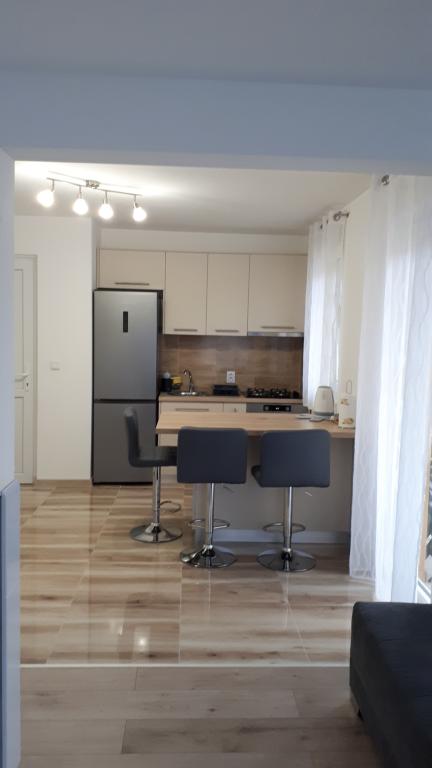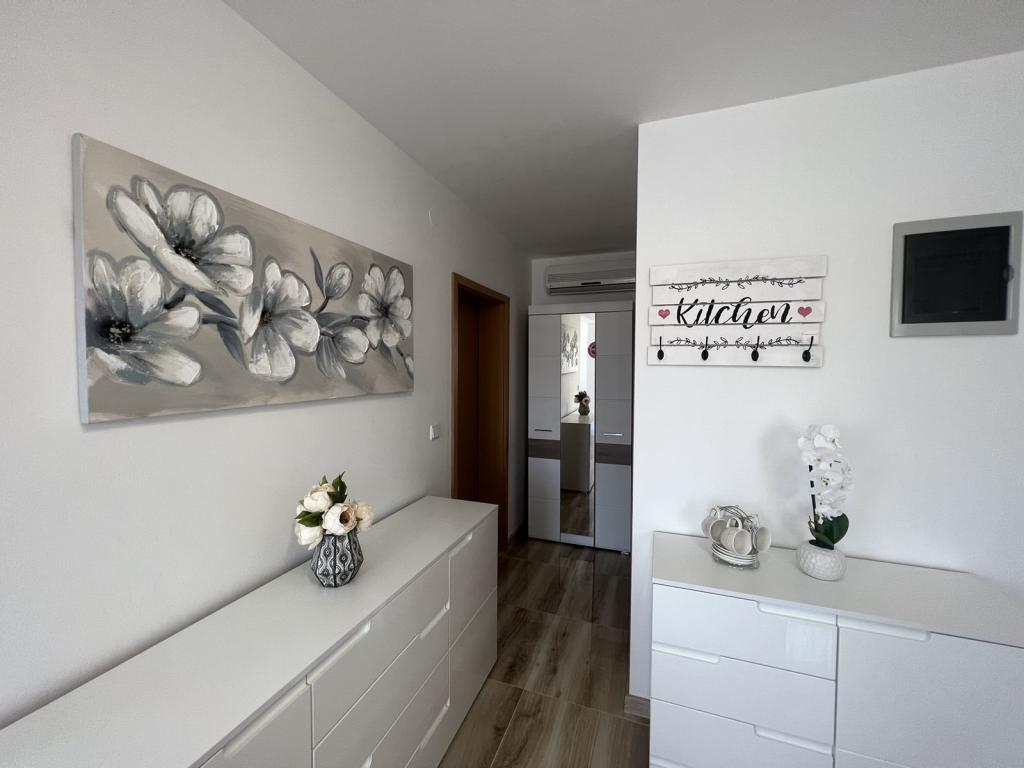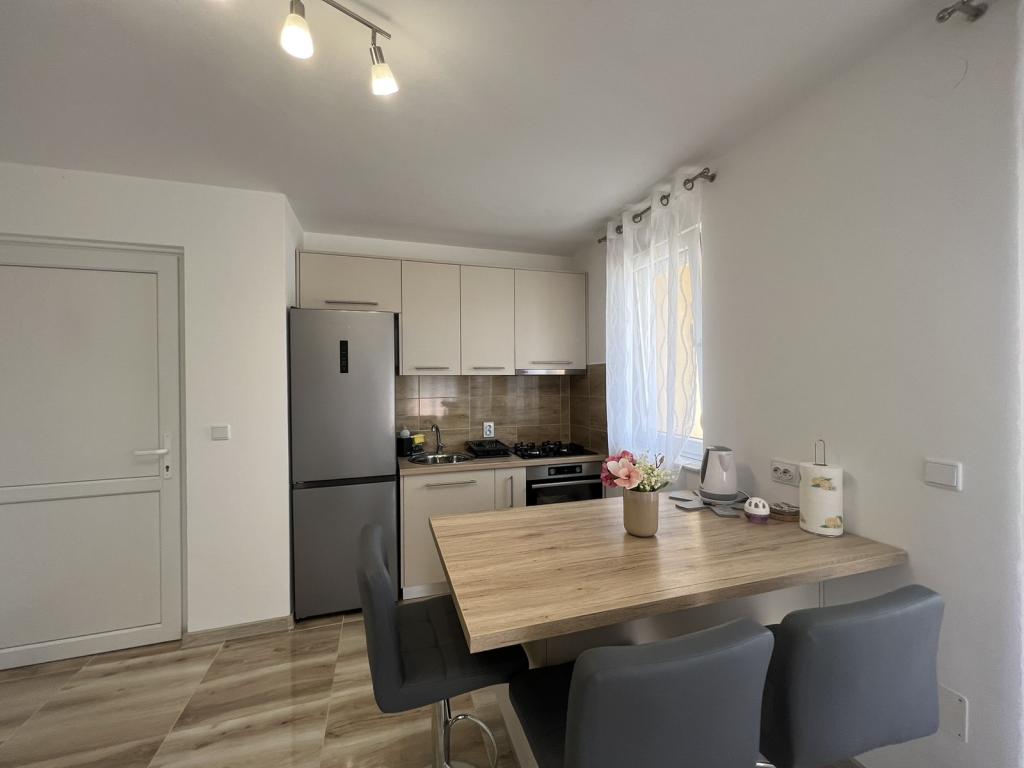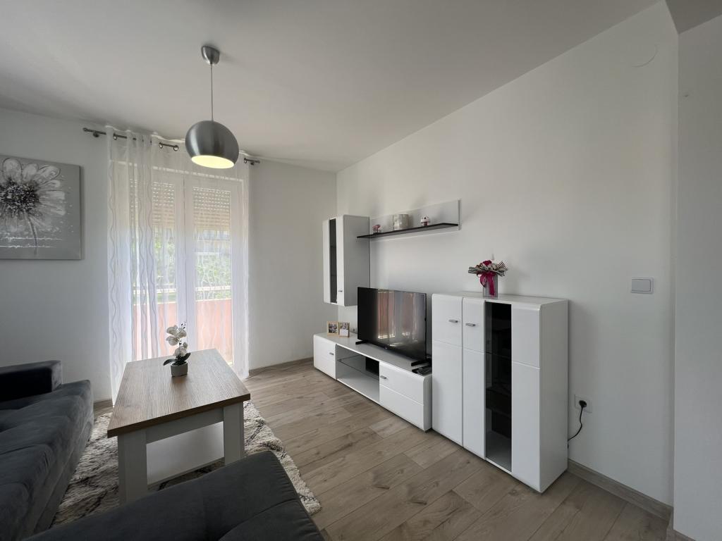 Moderno zasnovano stanovanje, ki se nahaja v 1. nadstropju stanovanjske stavbe na mirni lokaciji. Popolnoma prenovljeno stanovanje, 1 spalnica + raztegljiv kavč, 2 balkona, kompletna nova oprema, posteljnina, brisače, klima, Wi-Fi, parkirišče. hladilnik, pralni stroj rubljev