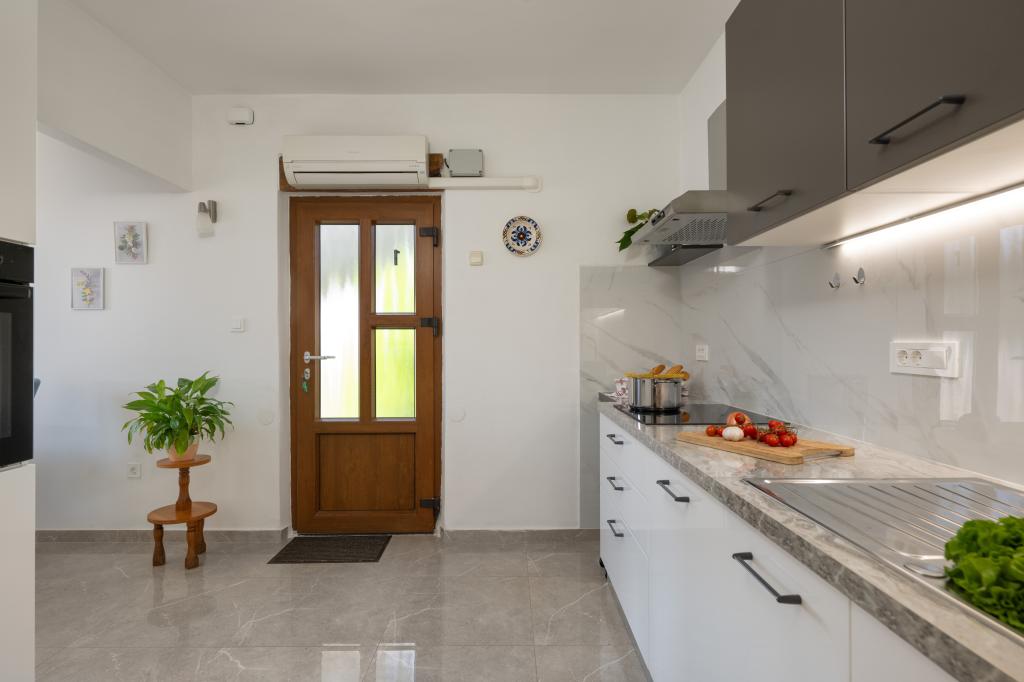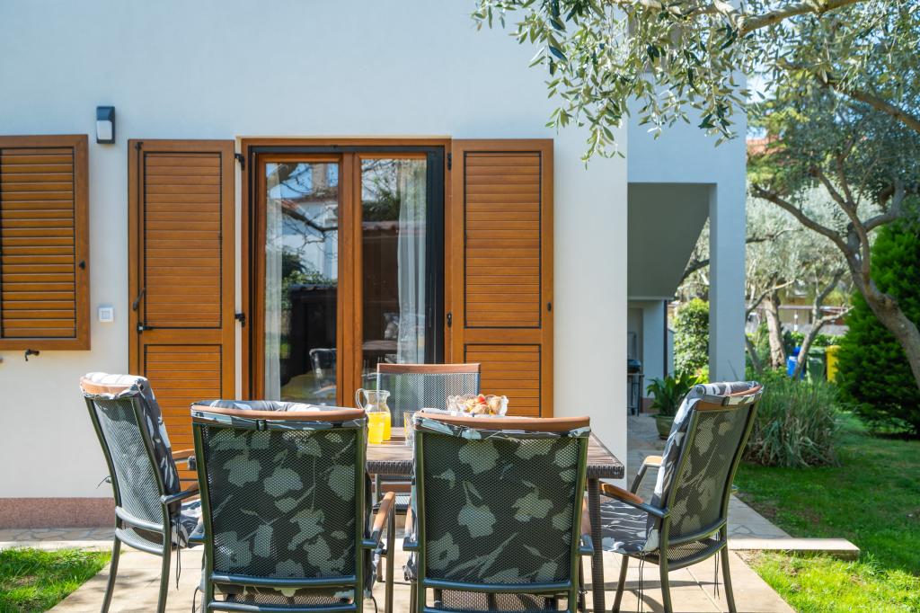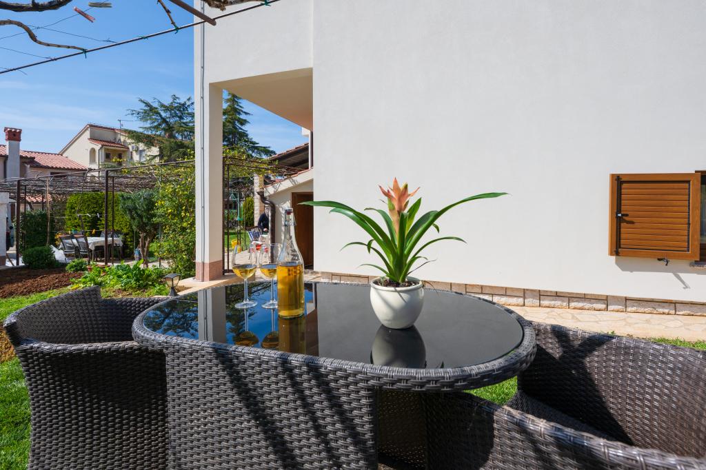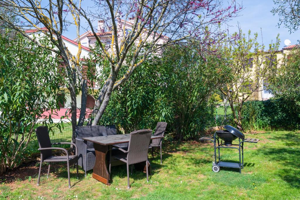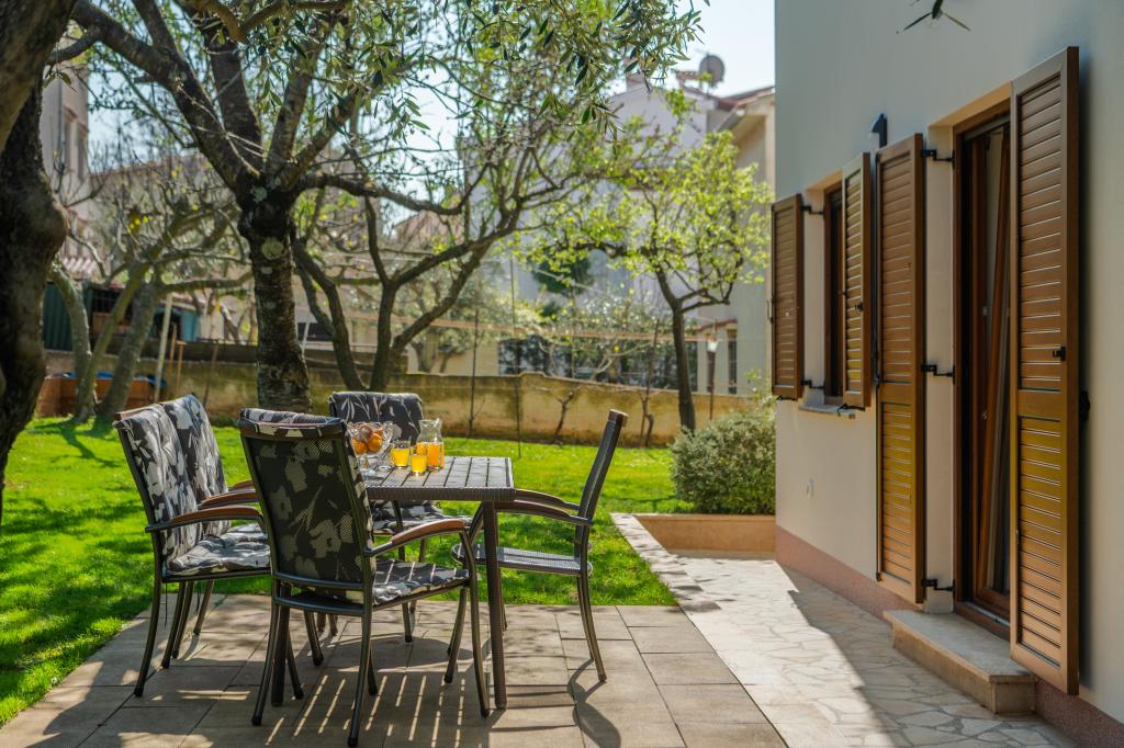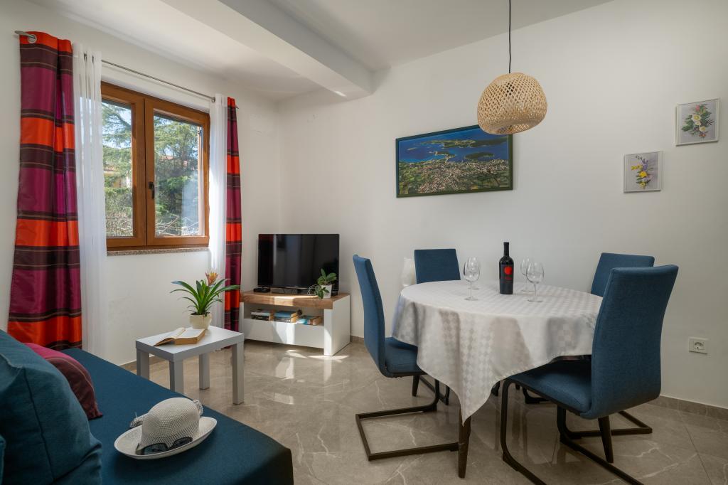 Hiša se nahaja v mirnem delu Medulina, 250-300m od plaže, z velikim vrtom, zasebnim parkiriščem. Na voljo so 4 apartmaji za najem, popolnoma in moderno opremljeni. 2 apartmaja se nahajata v pritličju. Apartma št. 1 z 2 spalnicama, kuhinjo, dnevno sobo, kopalnico in teraso. Apartma št. 2 z 1 spalnico, kuhinjo, kopalnico in vrtno teraso. V 2. nadstropju je apartma št. 3 z 2 spalnicama, kuhinjo, dnevno sobo, kopalnico in balkonom. Apartma št. 4 z 1 spalnico, kuhinjo z dnevno sobo, kopalnico in balkonom. Vsi apartmaji imajo klimatsko napravo, brezžični internet, satelitsko televizijo. Cena vključuje posteljnino, brisače, turistično takso, registracijo. Vsak apartma ima svoje parkirno mesto, vrt in prenosni žar na voljo. Najem pralnega stroja 5 evrov, dodatno ležišče 10 evrov. Parkirišče in dvorišče sta pod video nadzorom.
