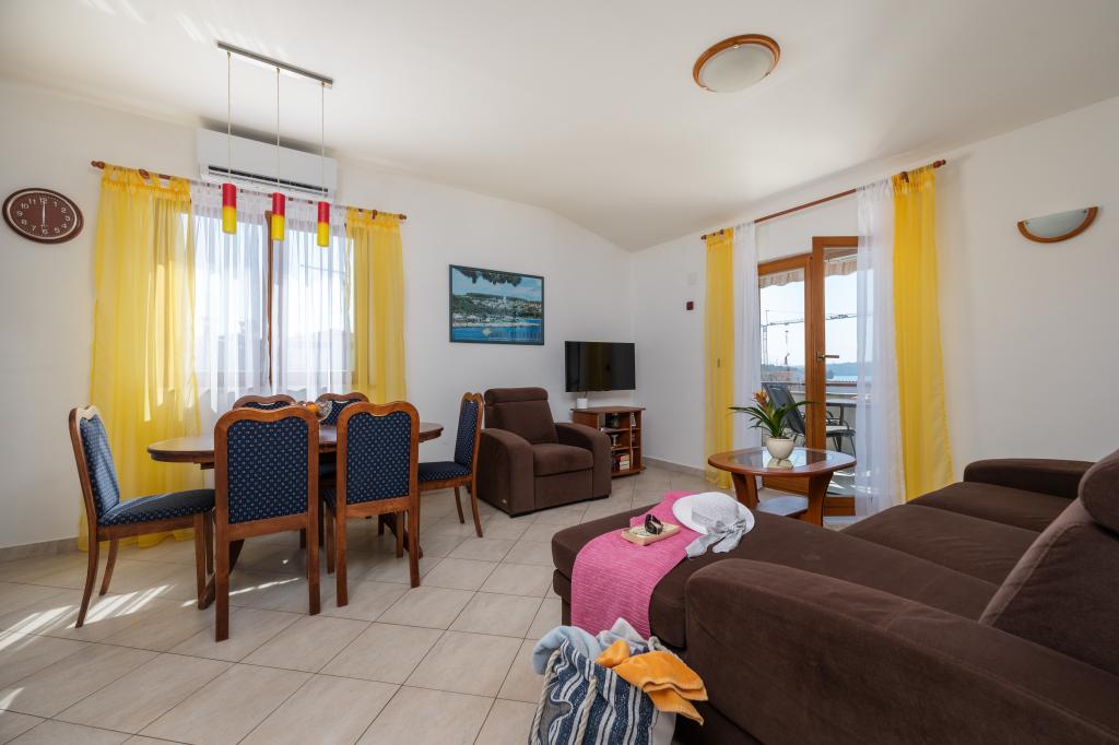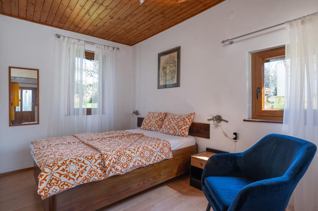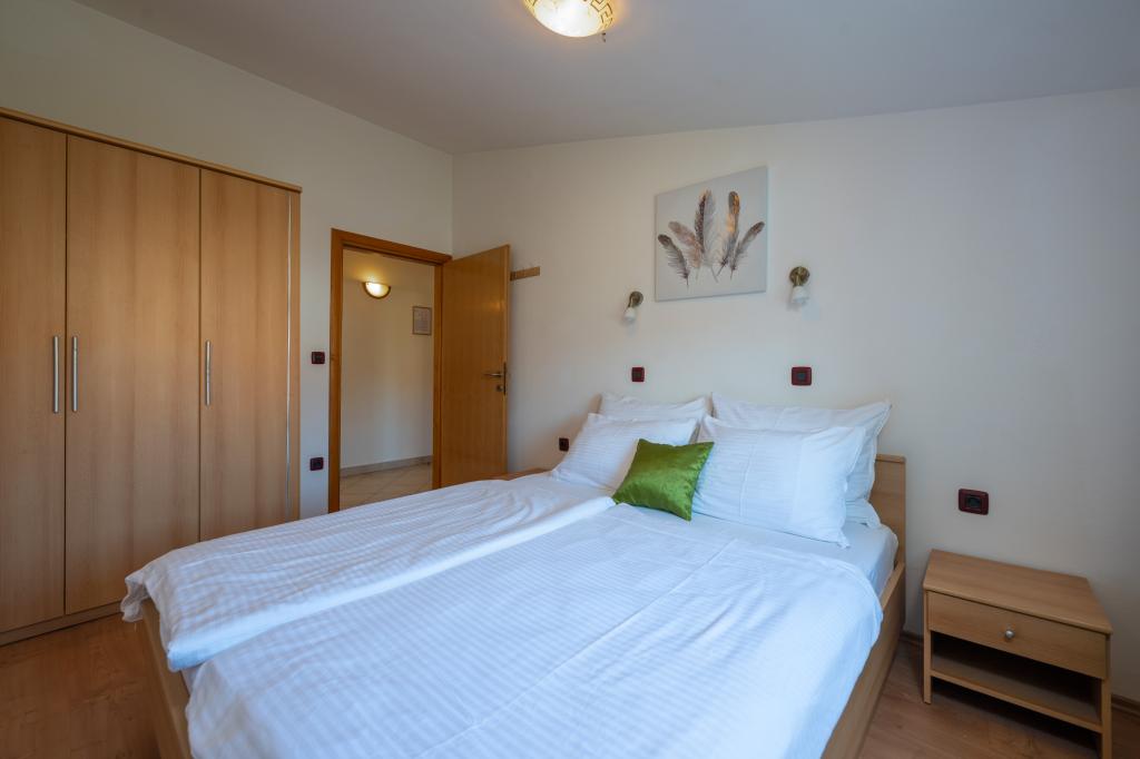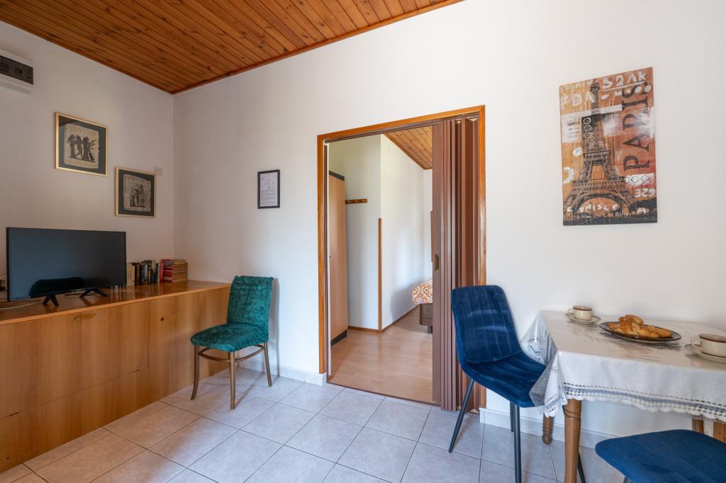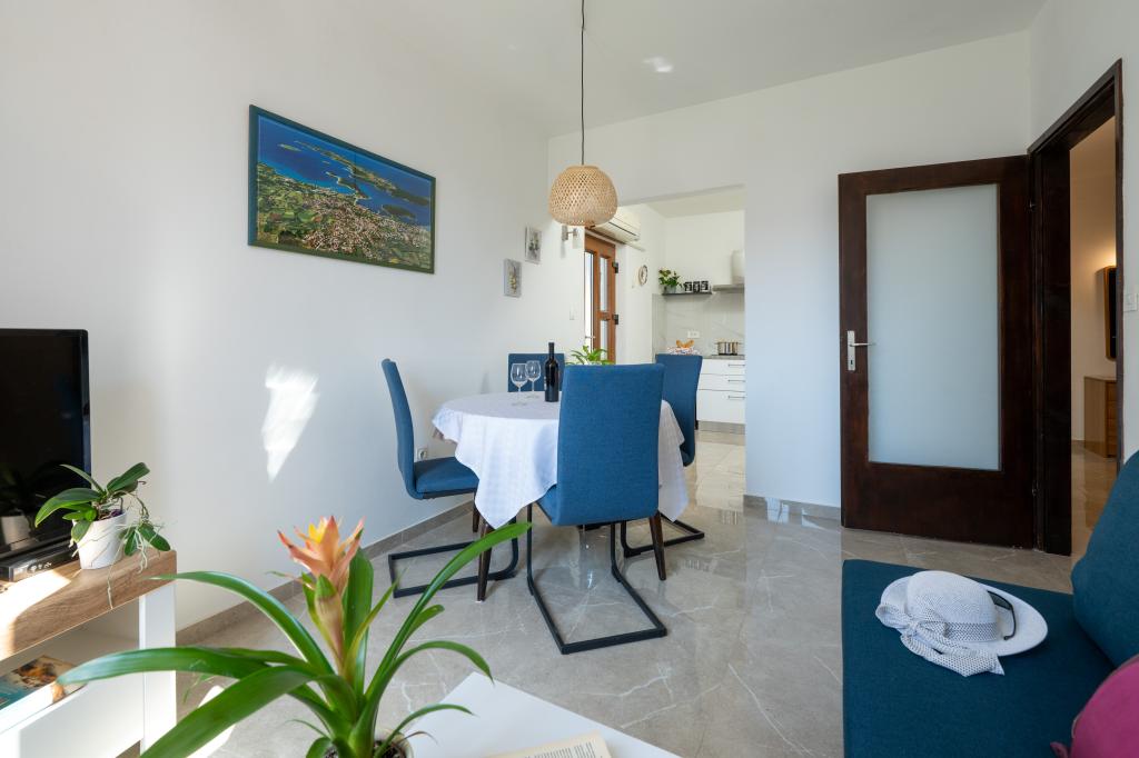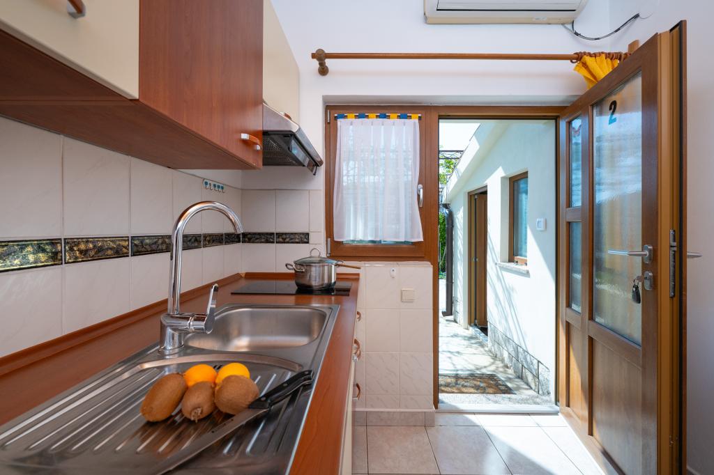 Hiša se nahaja v mirnem delu Medulina, 250-300m od plaže, z velikim vrtom, zasebnim parkiriščem. Na voljo so 4 apartmaji za najem, popolnoma in moderno opremljeni. 2 apartmaja se nahajata v pritličju. Apartma št. 1 z 2 spalnicama, kuhinjo, dnevno sobo, kopalnico in teraso. Apartma št. 2 z 1 spalnico, kuhinjo, kopalnico in vrtno teraso. V 2. nadstropju je apartma št. 3 z 2 spalnicama, kuhinjo, dnevno sobo, kopalnico in balkonom. Apartma št. 4 z 1 spalnico, kuhinjo z dnevno sobo, kopalnico in balkonom. Vsi apartmaji imajo klimatsko napravo, brezžični internet, satelitsko televizijo. Cena vključuje posteljnino, brisače, turistično takso, registracijo. Vsak apartma ima svoje parkirno mesto, vrt in prenosni žar na voljo. Najem pralnega stroja 5 evrov, dodatno ležišče 10 evrov. Parkirišče in dvorišče sta pod video nadzorom.