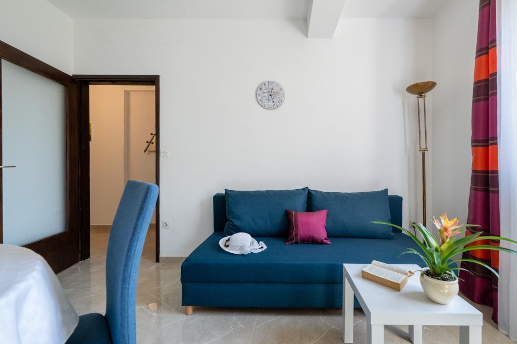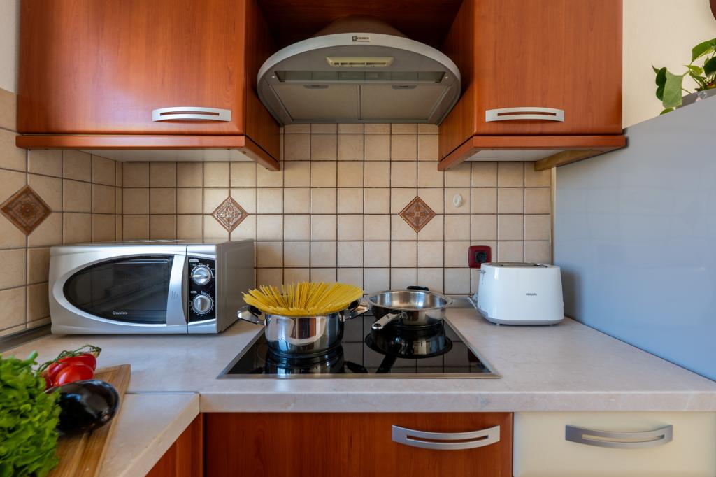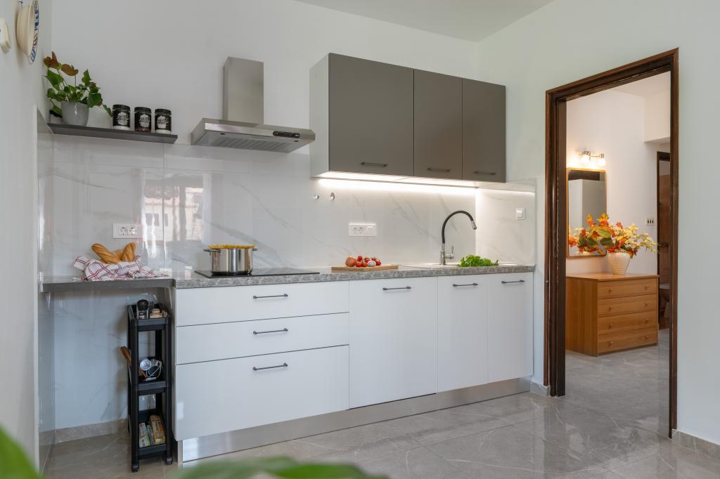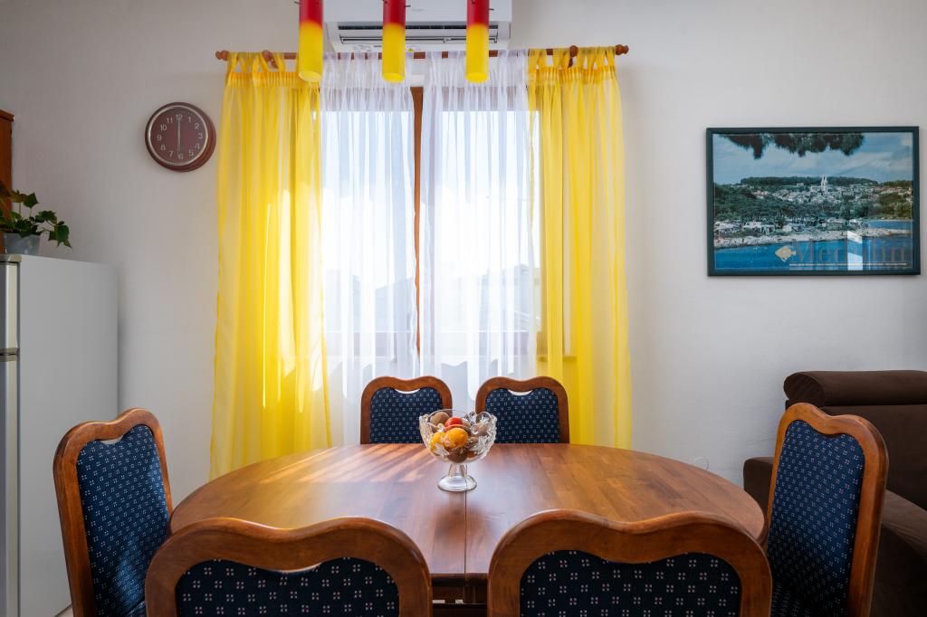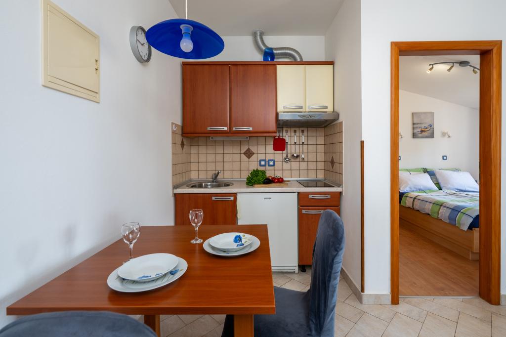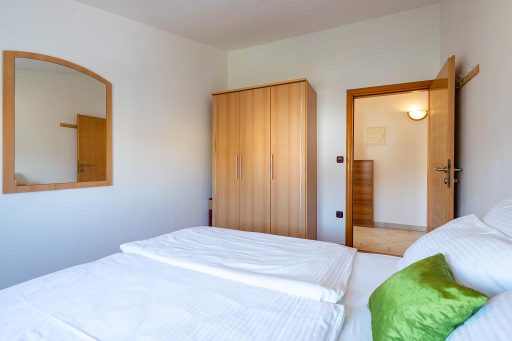 Hiša se nahaja v mirnem delu Medulina, 250-300m od plaže, z velikim vrtom, zasebnim parkiriščem. Na voljo so 4 apartmaji za najem, popolnoma in moderno opremljeni. 2 apartmaja se nahajata v pritličju. Apartma št. 1 z 2 spalnicama, kuhinjo, dnevno sobo, kopalnico in teraso. Apartma št. 2 z 1 spalnico, kuhinjo, kopalnico in vrtno teraso. V 2. nadstropju je apartma št. 3 z 2 spalnicama, kuhinjo, dnevno sobo, kopalnico in balkonom. Apartma št. 4 z 1 spalnico, kuhinjo z dnevno sobo, kopalnico in balkonom. Vsi apartmaji imajo klimatsko napravo, brezžični internet, satelitsko televizijo. Cena vključuje posteljnino, brisače, turistično takso, registracijo. Vsak apartma ima svoje parkirno mesto, vrt in prenosni žar na voljo. Najem pralnega stroja 5 evrov, dodatno ležišče 10 evrov. Parkirišče in dvorišče sta pod video nadzorom.