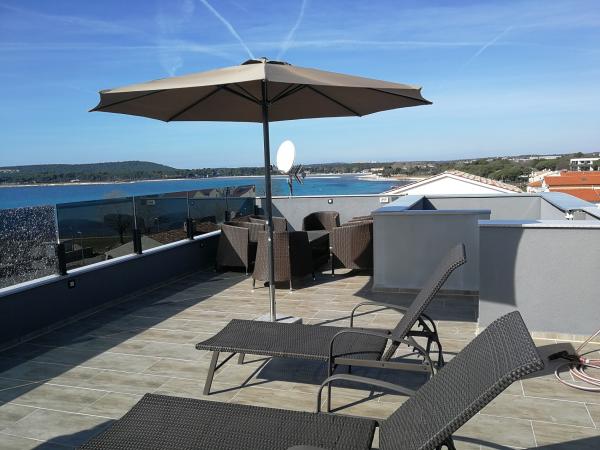 Do sedaj najboljši apartma v katerem smo bili. Moderno opremljeno, vsi pripomočki, ogromna terasa, le par korakov do plaže, do mesta le dobrih 10 minut, da o pogledu s terase ne govorim ..... Priporočam vsem !!!!