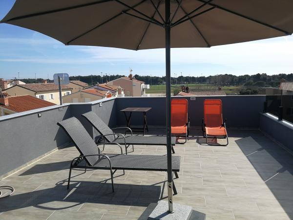 First of all, booking, komunikacija med nami in lastnikom, in končno plačilo šlo brez težav. To je bil naš prvi velik vtis. Potem, ko smo prispeli, je bilo najti stanovanje malce zapleteno (Celotno območje je napolnjena z novimi, presenetljivo malo stavbah - velika območja mesta), vendar lastnik pomagal na telefonu. Stavba je zelo urejeno, je bilo stanovanje čisto (skoraj kot bi si stopil v povsem novo mesto), je pohištvo je novo, moderno, vključno z vsemi ekstra stvari (kuhinjska posoda, pralni stroj, klimatska naprava, ... itd.). .. vse v vsem, ne more meriti do nekaterih prejšnjih izkušenj. Ceja je super in je optimalna za mlade in za družine, kot tudi. Okna zapiranje najmanjših zvoke stranke na mesto. Terasa ima krasen razgled na okolico. WiFi je na voljo (ne pričakujte hitre tokov HD z Youtube pa haha!), Dve parkirni prostor je na voljo na vrtu (deljeno s stanovanje spodaj), vendar je parkirišče tik nad po ograji, tako da, če katera koli dodatni avto je prisotna (zaradi 6 oseb bivanja, na primer), da bi lahko videli vaš avto 20m od terase. Morje je dobesedno 100m stran, kar pomeni, 2 minut hoje do skalnate plaže (ki je IMO največji vzdolž obale) in center mesta je tudi ne preveč (1,5 ~ 2 km, 15 minut hoje vzdolž obale). Lastnik je bil zelo koristen, je vedno v bližini, zato se postavlja vprašanje, kaj bi mu pomagal. Tam smo bili s 6 odrasle osebe, ki je še obvladljiv (vendar ne pričakujte preveč o konvertibilni dvojno kavč v dnevni sobi). Vse v vsem, moderno izgledi, čiste in izjemno pripravljeni prostori zagotovljeno bivanje užitek v Medulinu. Apartma je super, veliko vrednost za svojo ceno!