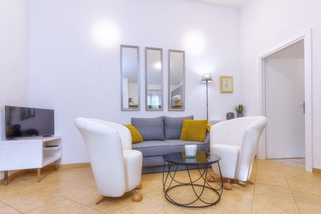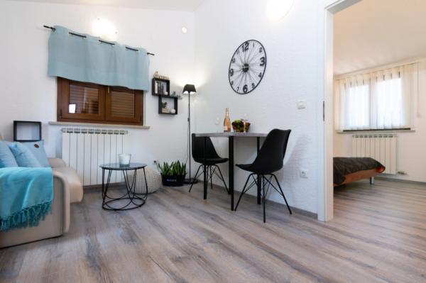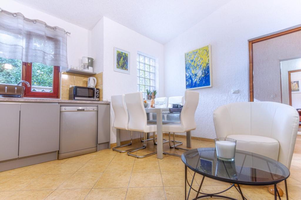 Zelo lepo, pritličje, centralno a še vedno mirno stanovanje. Stanovanje je v celoti opremljeno, če pa še kaj manjka, je vedno na voljo gazdarica. V apartmaju lahko brez težav živita 2 odrasla in 2 otroka, prostor za igro je v notranjosti in na veliki terasi. Parkiranje je možno na ograjenem zemljišču Trgovina 1 min hoje stran. Lokalna restavracija (Konoba Willi) tik čez cesto. Do prodnate plaže je 5 min hoje. Lahko le priporočim stanovanje in najemodajalca.