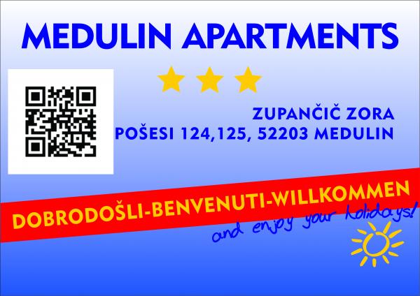 Si želite z družino doživeti lepe in mirne počitnice? Pri nas je to mogoče! Naši apartmaji se nahajajo v naselju Pošesi v Medulinu. Vse so klimatizirane in opremljene z novim pohištvom in opremo. Središče Medulina je oddaljeno nekaj minut lahkega sprehoda ob obali. Ob objektu sta dva kamina z opremo za žar, ki ju lahko gostje prosto uporabljajo. Parkirišče je ob samem objektu. V apartmajih je nameščen brezplačen wifi. Apartma ima pogled na morje. Trudimo se, da so naši gostje vedno zadovoljni, zato se k nam redno vračajo. Vsem stalnim in novim, bodočim gostom priporočamo predhodno rezervacijo, saj je v sami sezoni težko najti prosto mesto in željen termin.