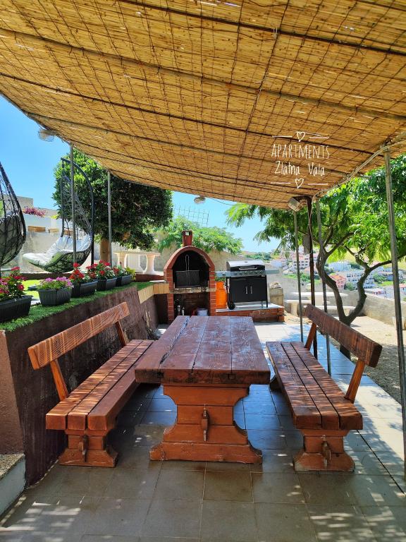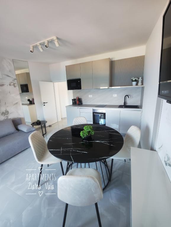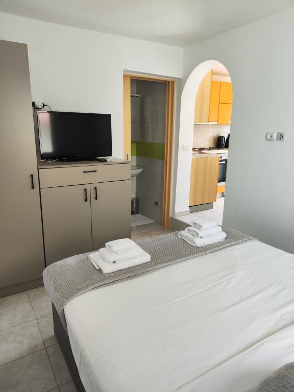 Že nekaj let hodimo na počitnice na Hrvaško. Običajno med enimi počitnicami preizkusimo več različnih namestitev in moramo reči, da je bil to naš najboljši apartma doslej! Apartma ponuja veliko prostora za štiričlansko družino – v njem smo se počutili zelo udobno. Je moderno opremljen, daje luksuzen vtis, je izjemno čist (izgledal je skoraj kot nov) in ima balkon z dih jemajočim razgledom na glavno plažo in celoten zaliv Metajna, kjer smo skoraj vsak večer uživali v sončnem zahodu. Apartma je odlično opremljen. Poleg uporabnih aparatov, kot so pomivalni stroj, indukcijska kuhalna plošča, klimatska naprava, Wi-Fi (z močnim signalom) itd., sta na voljo tudi aparat za kavo in palični sesalnik, kar še posebej cenijo vsi z otroki. Prejeli smo neomejeno zalogo tablet za pomivalni stroj in kavnih kapsul. Tik ob apartmajski hiši lahko uporabljate dve vrsti žara in se sprostite v visečih ležalnikih na terasi. Med bivanjem sta nam gostitelja prijazno posodila tudi svoje deske za supanje, kar nam je dalo fantastično priložnost, da prvič preizkusimo supanje. Apartmaji ponujajo tudi prostorno parkirišče neposredno nad stavbo. Vse te podrobnosti prispevajo k splošnemu udobju in odličnemu občutku bivanja tukaj. Na dan prihoda smo na mizi našli darilno vrečko z domačimi marmeladami, ki so jih pripravili gostitelji sami. Bilo je tako lepo presenečenje. Gostitelja sta bila že od prvega trenutka zelo prijetna in komunikativna. Brez težav sta nama pomagala pri vsem, kar sva potrebovala, in sta bila vedno pripravljena ustreči nama. Med bivanjem naju je gostiteljica dvakrat presenetila s polnim krožnikom svežih palačink in okusno torto. Najbližja plaža je oddaljena le približno 2 minuti hoje po ulicah Metajne – glavne plaže Metajne. Takoj za majhnim hribom se nahaja čudovita plaža Ručica. Priporočam, da si tam najamete pedalino in si ogledate bližnjo plažo Beritnica, nad katero se dvigajo osupljive peščenjakove skalne formacije. Ob sončnem zahodu smo uživali v sprehodu po obalni poti »Življenje na Marsu«, ki se začne na koncu plaže v Metajni in se vije do plaže Ručica. Kot sem že omenil na začetku te recenzije – to stanovanje je daleč najboljše, kar smo jih najeli na Hrvaškem. Tukaj smo se resnično počutili kot doma. Priporočam ga z vsem srcem!
