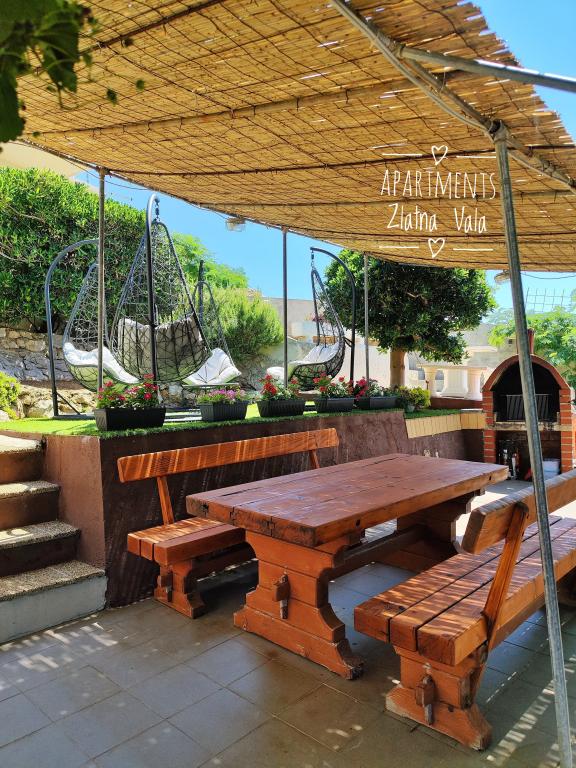 Apartmaji Bingula se nahajajo na majhnem hribu Glavica, oddaljenem 150 m od centra mesta Metajna. Bližina centra in morja omogoča, da so naši gostje v središču dogajanj v kratkem času in se tudi umikajo v mir, ki ga ponuja naša stran. Za naše goste je več teras z skupnim žarom, za najmlajše pa imamo majhno igrišče, tako da se starši lahko sprostijo neomejeno. Vsi apartmaji so popolnoma opremljeni in sodobno opremljeni: kuhinja z dnevno sobo, kopalnica s straniščem, klima, SAT TV, WLAN, balkon s pogledom na morje .... Za tiste, ki se odločijo za polpenzion, nudimo hrvaške specialitete in mednarodne specialitete s hrčkimi medeninastimi. Če nekaj zamudite, vedno obstajajo vaši gostitelji, ki bodo z veseljem prišli in vas spoznali. Veselimo se vašega prihoda, Družina Bingula